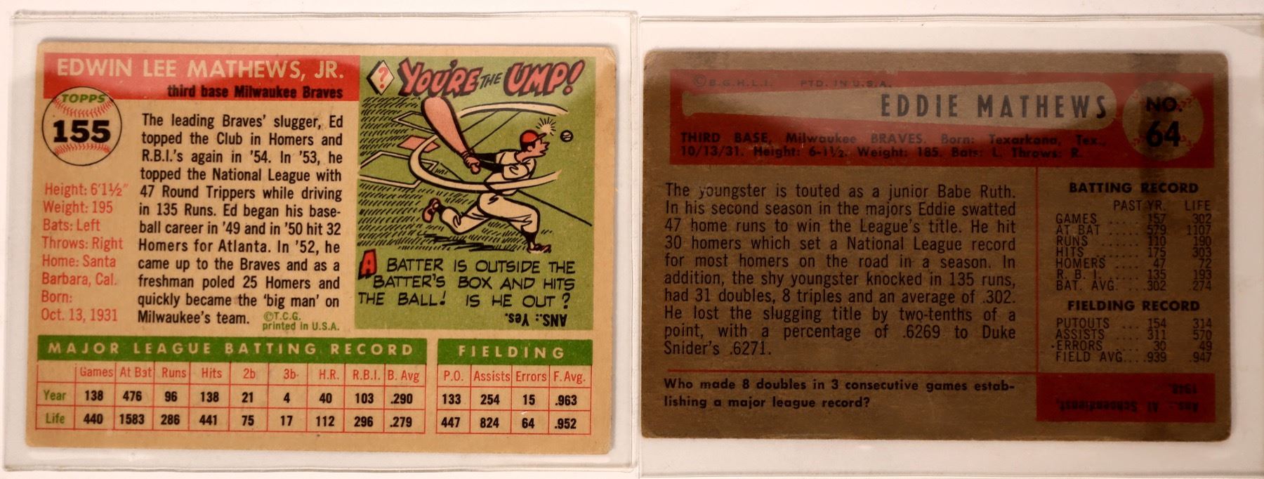 Mathews, Eddie, 1954 Bowman & 1955 Topps Cards [153432]