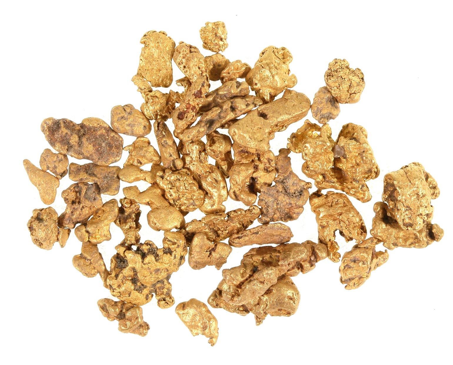 6.49 grams, .205 Troy. Largest is 8mm. Placer gold from Huckey House claim, Mazourka Canyon, which plays host to a myriad of geologic environments, much of which are older limestones. The limestones are cut from place to place by intrusions, which in turn can localize mineralized solutions ripe for reacting with limestone. The 1888 Report of the State Mineralogist report on Inyo County geology and mining prospects by Goodyear discusses this to a fair degree, albeit in 1888. There are a number of mines in the hills above the mouth of Mazourka Canyon. My job (fh), nearly one hundred years later, was to walk those mountains as part of a wide-based exploration program, centered around a single mine submittal. Goodyear discusses the two Owens River mining camps in some detail that were near the base of Mazourka Canyon. Back in the early 1980s, everything was long gone. But 100 years before, there were still more than a dozen buildings sitting deserted in the desert. A few small mines and prospects dot the hillside in the lower reaches of the Inyo Mountains at Mazourka. There were copper, silver deposits. In fact, most of the small mines were silver mines. As one climbs up through the mountains toward Cerro Gordo, a thick band of dark brown rocks "chalk-full" of prospects and underground working sticks out as an anomaly to any ore deposit geologist. Many called this the "gold zone," as the sampling of these clearly showed strong evidence of gold.