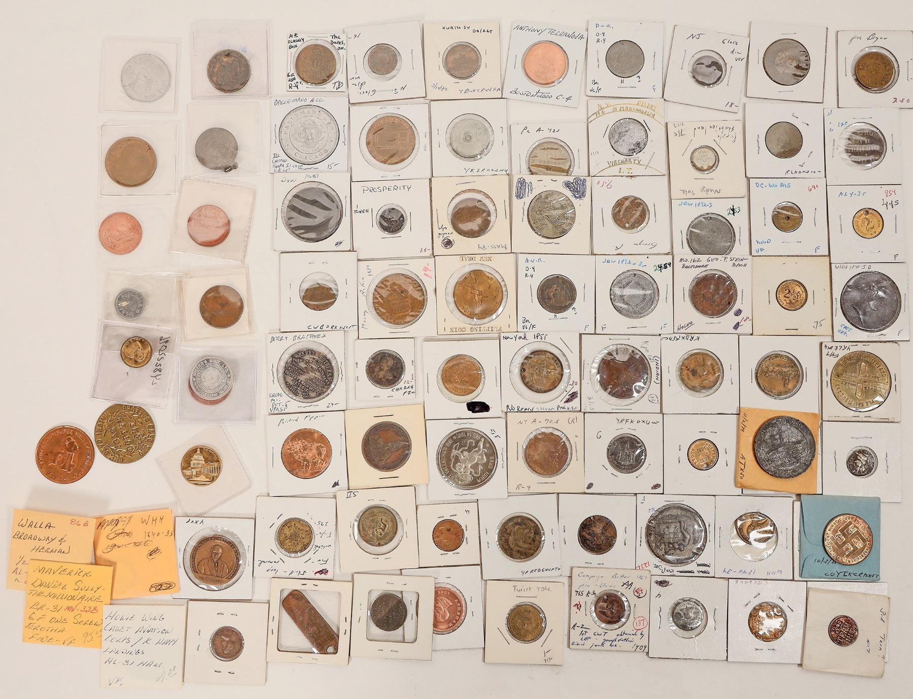 Over 85 miscellaneous medals from the end of a collection: Berry Brothers, Detroit; E. R. Hull & Dutton's; Howie Wing Cadet Aviation Corps; Dellemond & Co., Chicago; Wm. H. Harrison; temperance medals and many more. [