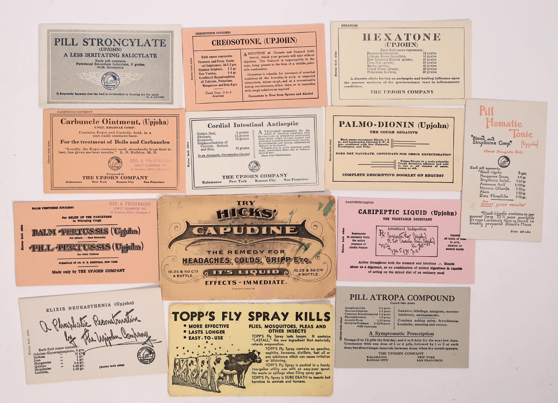 13 medical advertising blotters. Stroncylate, Balm Pertussis, Upjohn, Creostone, Atropa Compound etc. [