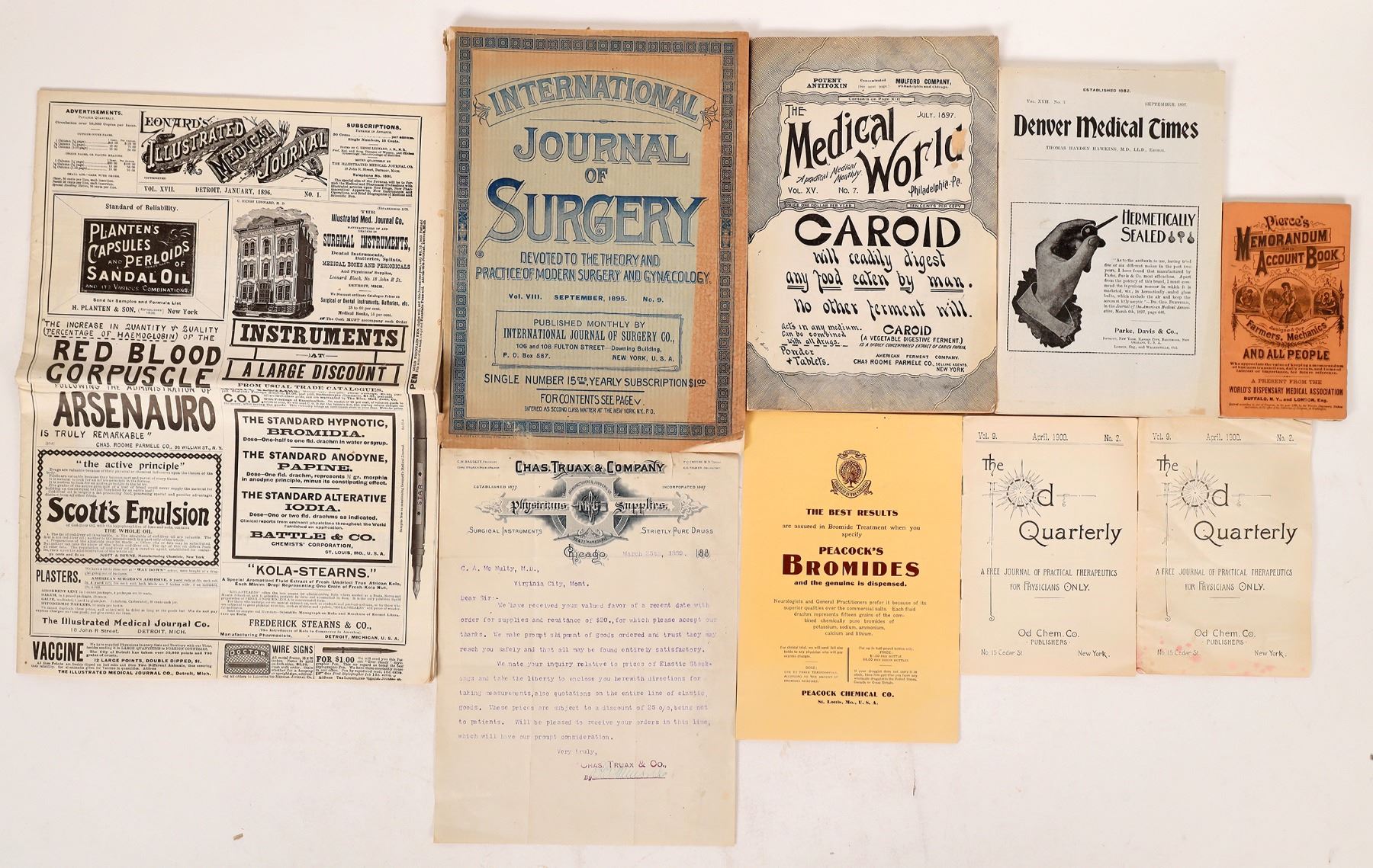 Medical papers and ads from the late 1800s to early 1900s, including an International Journal of Surgery, Leonard's Illustrated Medical Journal, The Medical World and more. All items are in nice condition. Please see photos for more details. 1899-1904