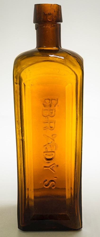 Brady’s Family Bitters was manufactured by D. C. Brady in Louisville, Kentucky. Applied top 3 panel bottle. BRADYS / FAMILY / BITTERS. No visible chips or cracks.