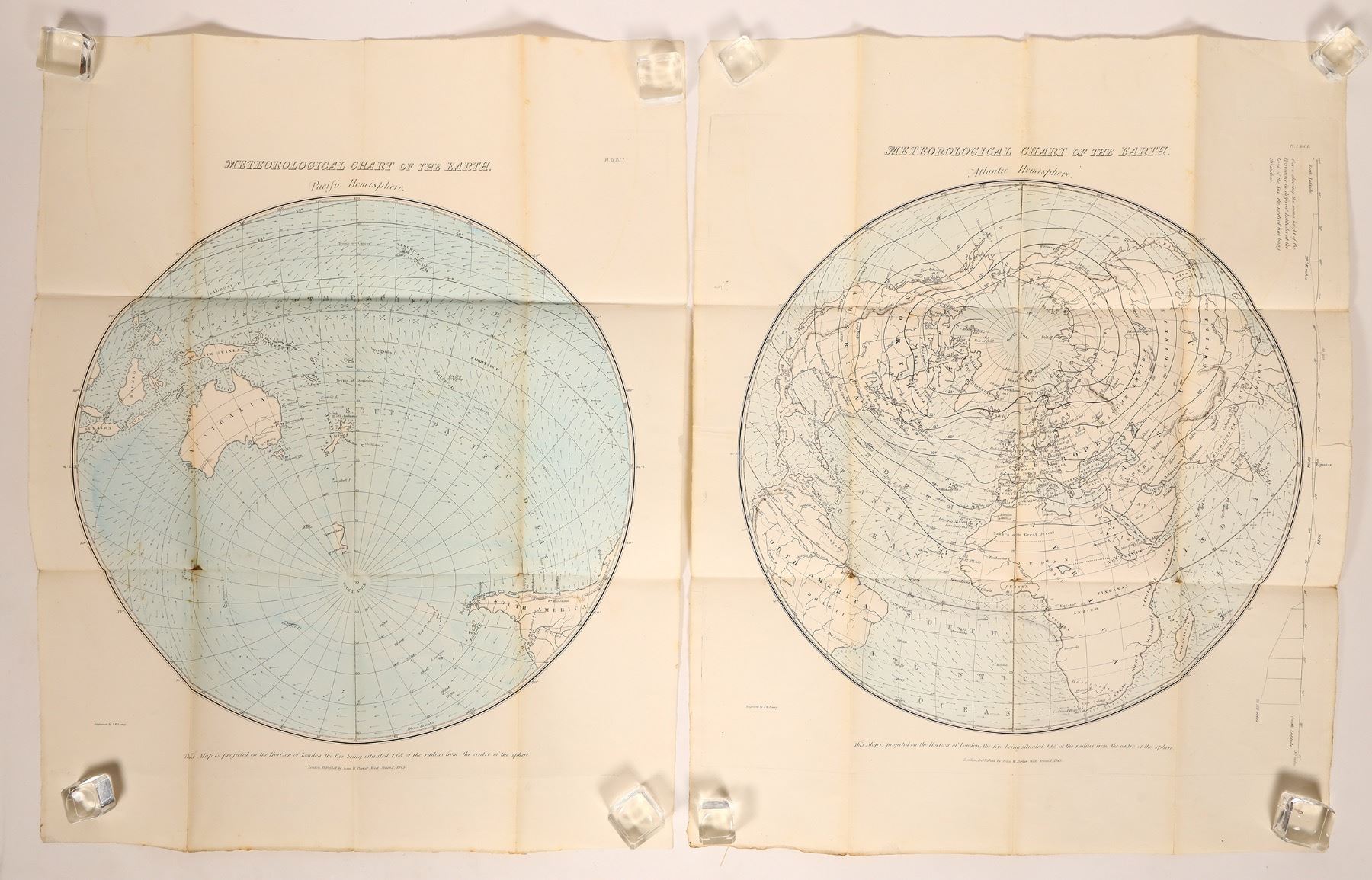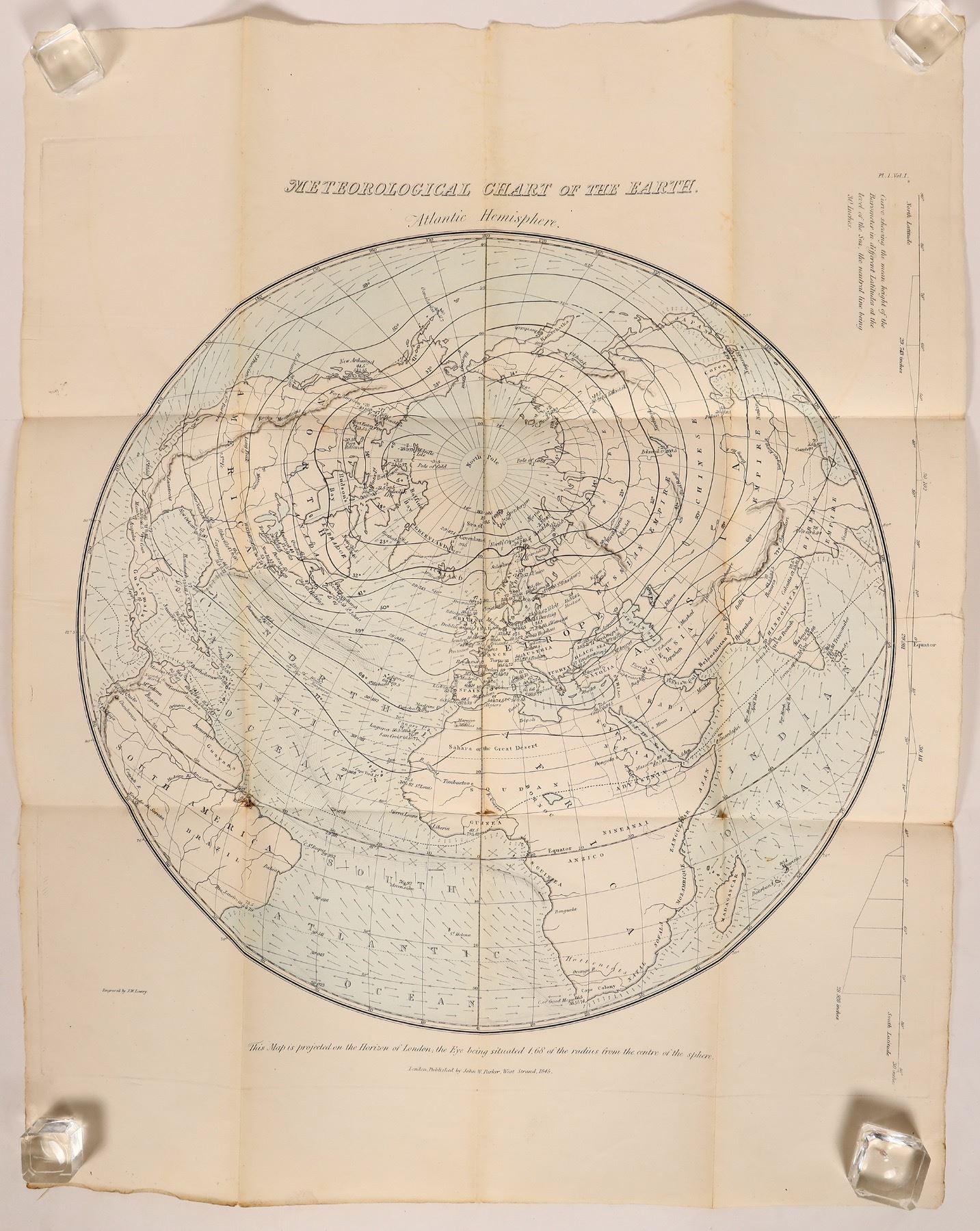 A pair of antique maps of the Southern and Northern hemispheres, c1845. Mercator maps, published by John W. Parker, West Strand, London. Each measures about 17" x 22". Please see photo(s) for more details.