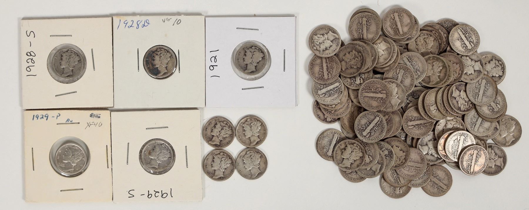 About 110 Mercury dimes dated in the 1920s. Average circulated condition: VG-EF overall.