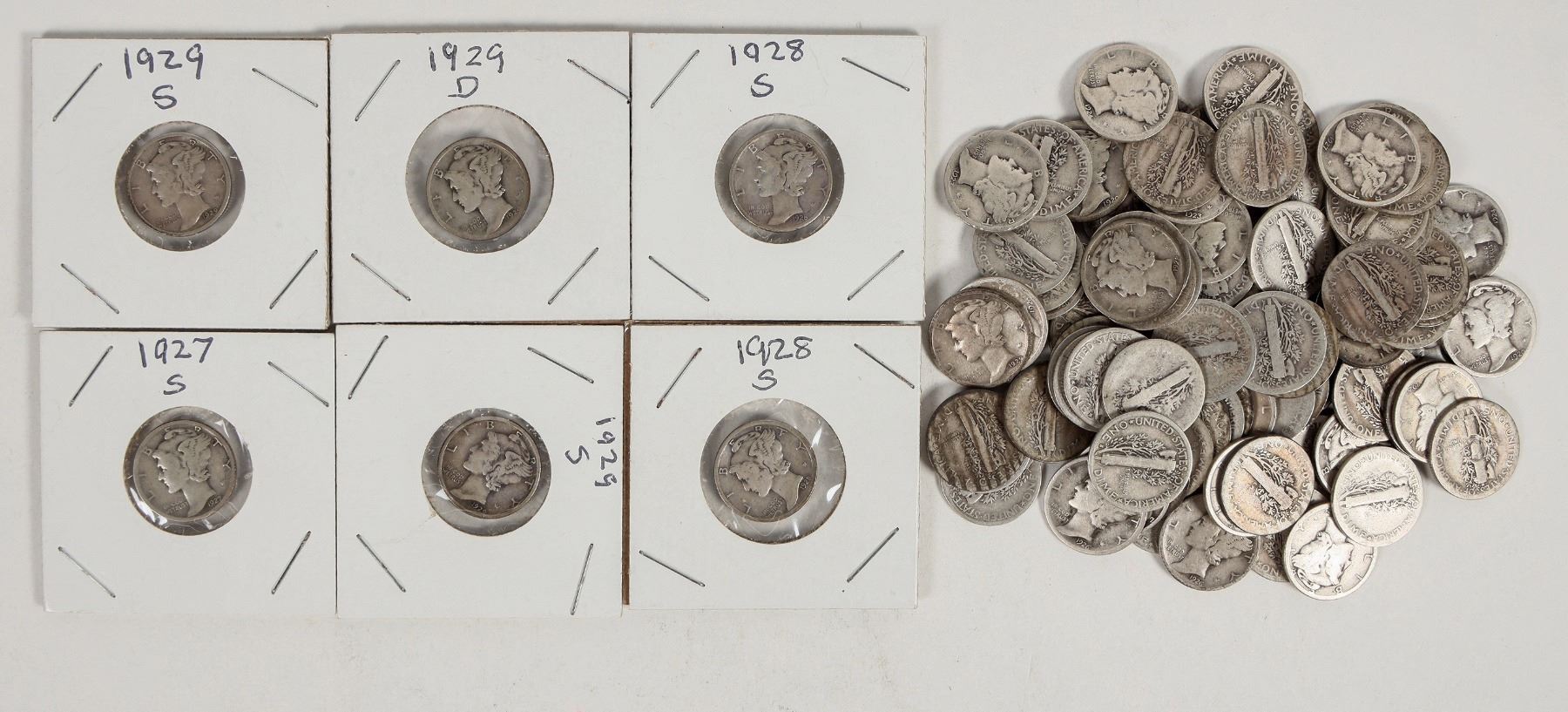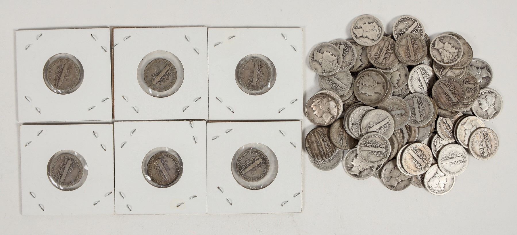 Ninety four Mercury dimes dated in the 1920s. G-EF condition. Not checked for dates or mint marks.
