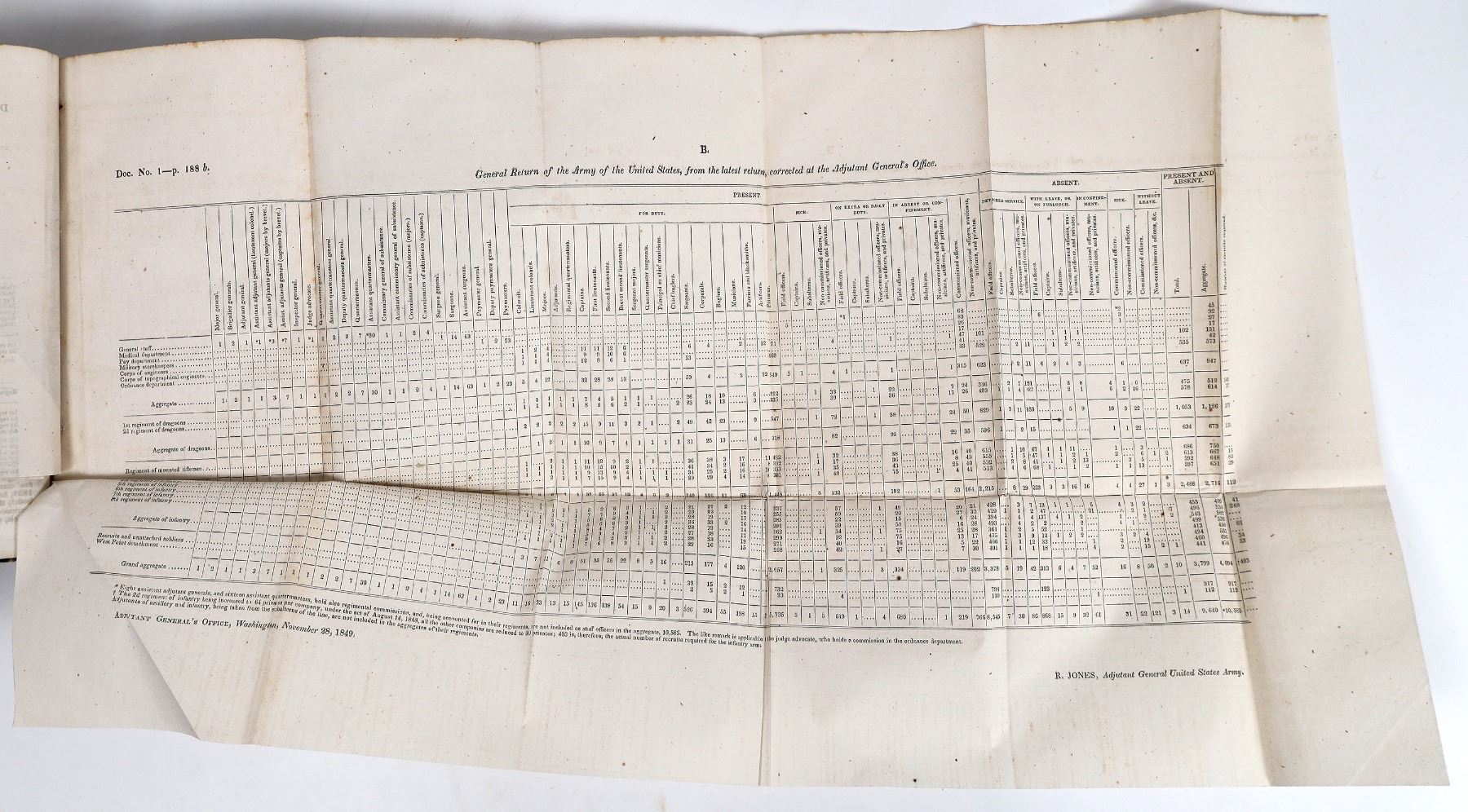 Message from the President of the United State to the Two Houses of Congress at the Commencement of the First Session of the Thirty-First Congress. Message by Zachary Taylor. Also contains a follow up on gold in California by B. Riley Brevet, Brigadier General U.S.A. 851 pages with 4 foldouts. Foxing throughout, otherwise good condition. 6 x 9 inches. 1849