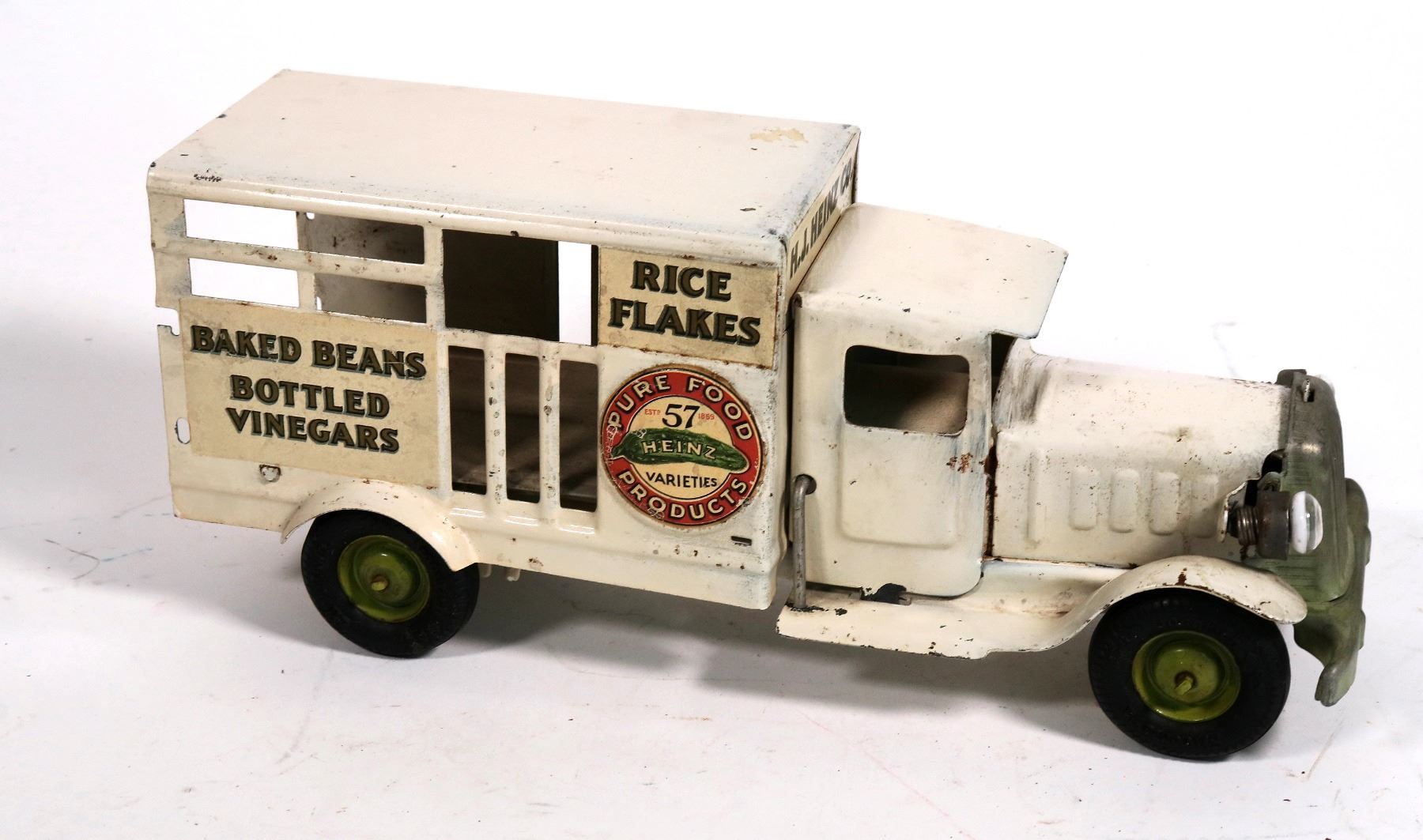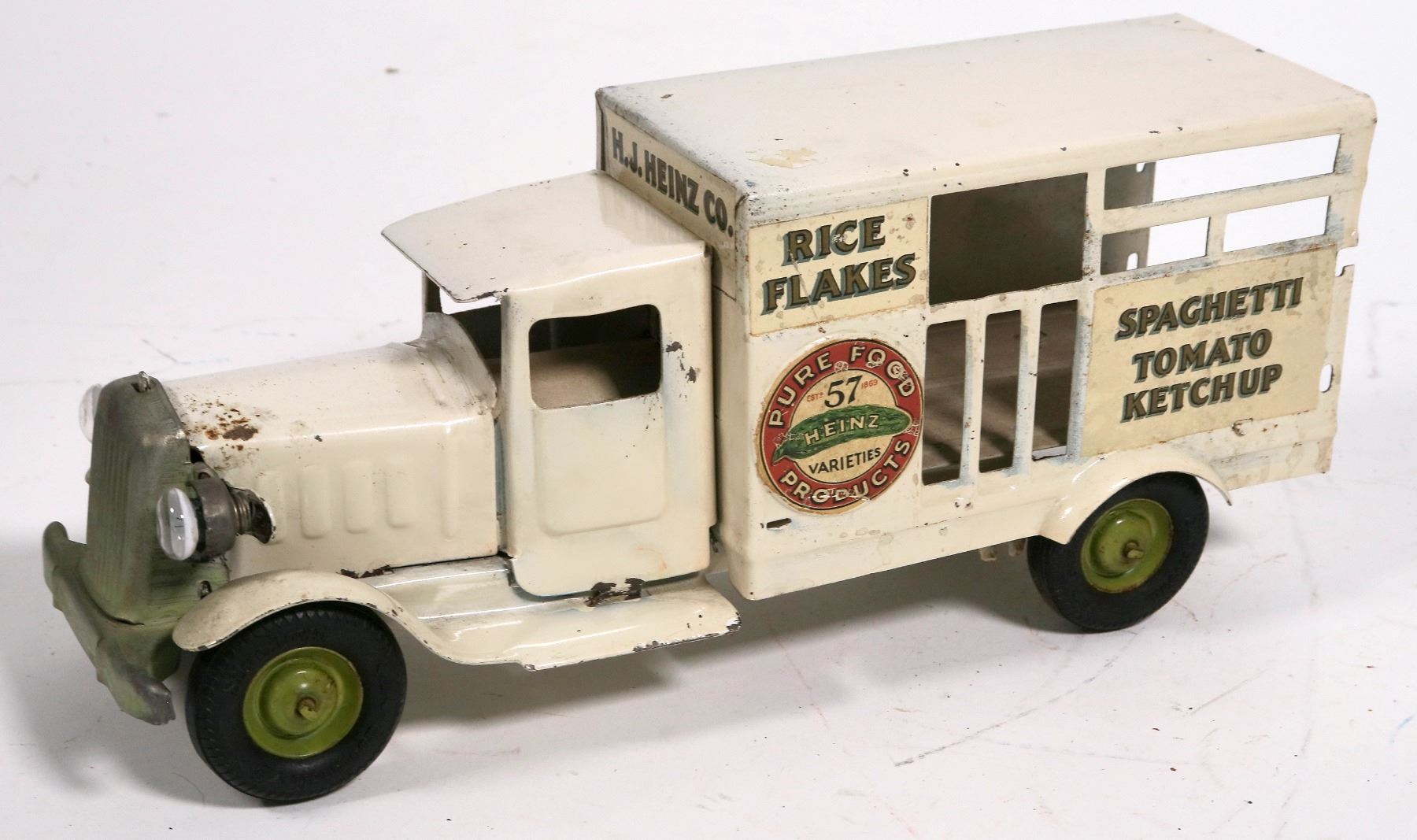Metal Craft Heinz 12 delivery Truck. Complete and in good condition. Will need to be cleaned up. Has some wear, decals are in good condition. Did not test the lights which are there.