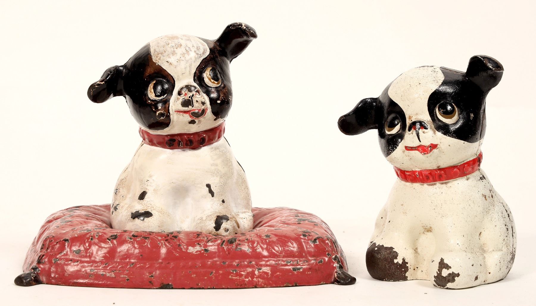 Two metal sculptures of puppy dogs (2) Measure 6"x 7" and in good condition. Please see photos.