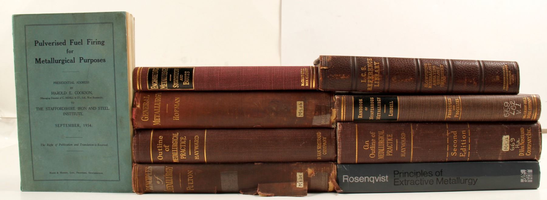 9 Books include: Pulverised Fuel Firing for Metallurgical Purposes; Materials Science and Engineering Series; An Outline of Metallurgical Practice; Handbook of Nonferrous Metallurgy; Blowpiping Mineralogy Assaying Geology Chemistry; & more!