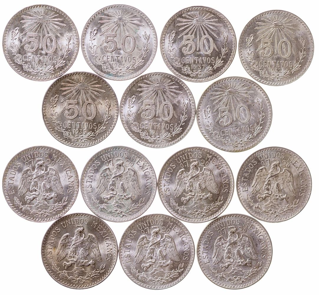 Lot of seven: KM 447 (1937, 1939, 1942, 1943, 1944, 1945) (.1929 oz. ASW) ; KM 448 (1935) (.1077 oz. ASW). Brilliant uncirculated. State: City: Date: FHWAC#: 40650