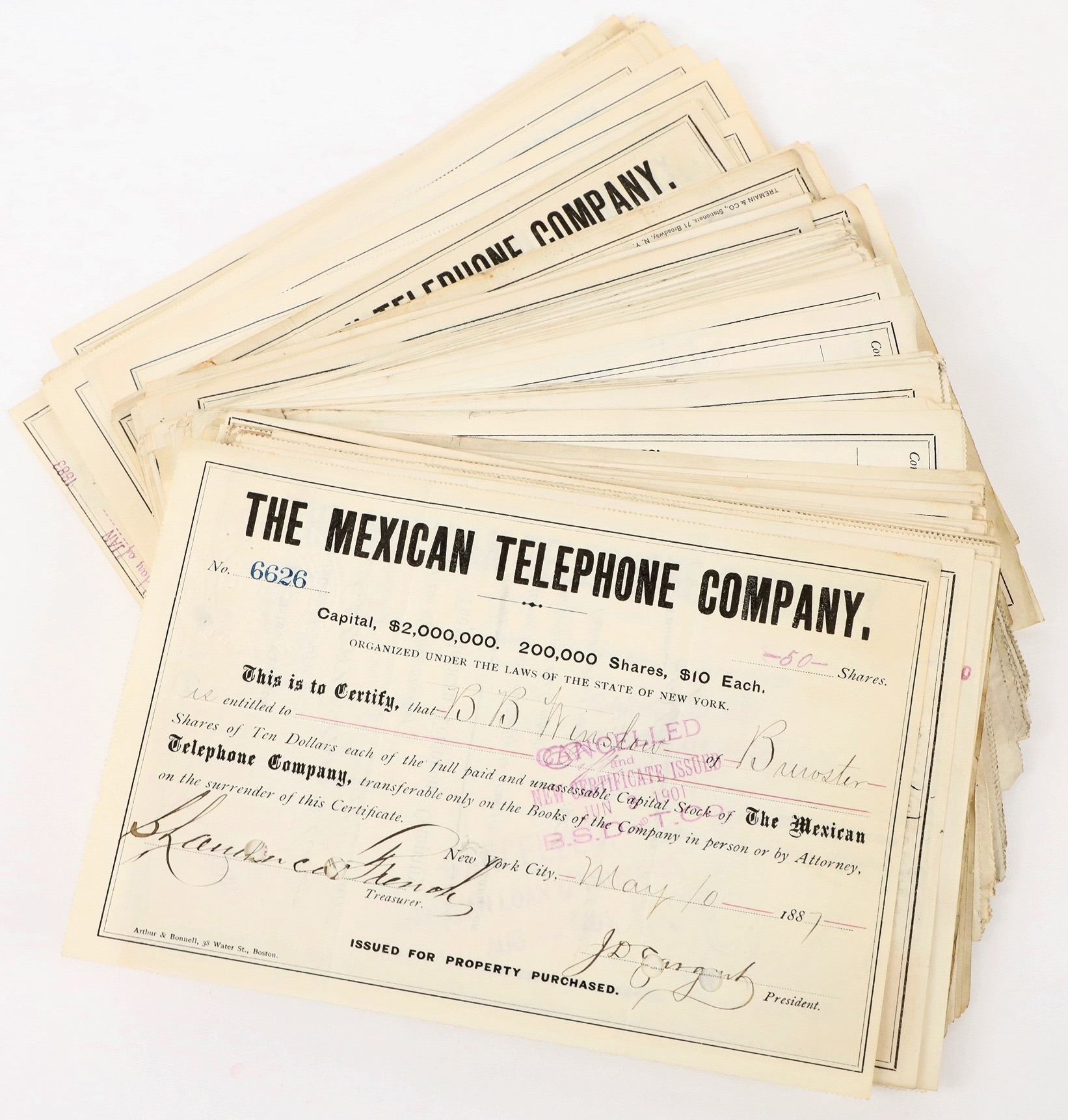 Lot of 150+ stocks issued 1880s-early 1900s. Punch cancelled. See photos.