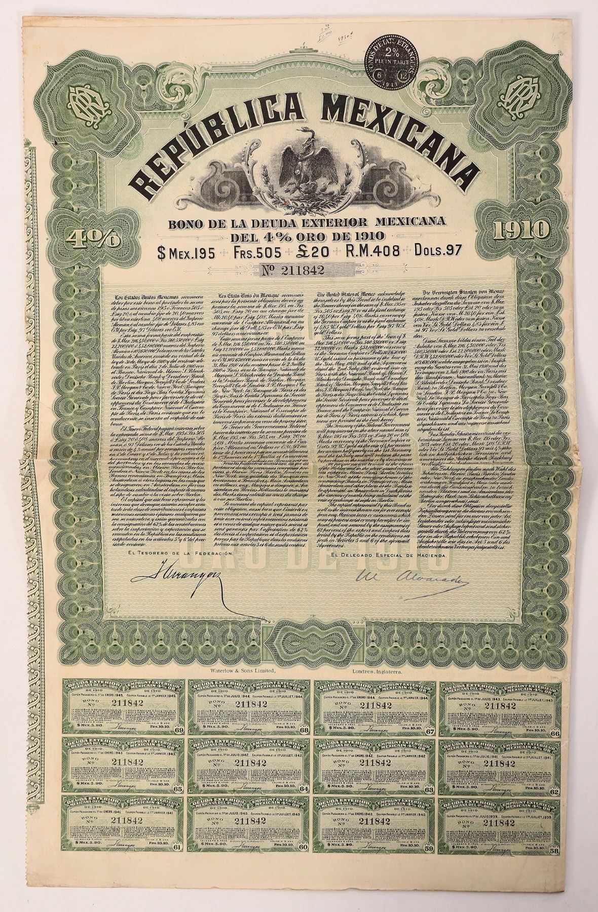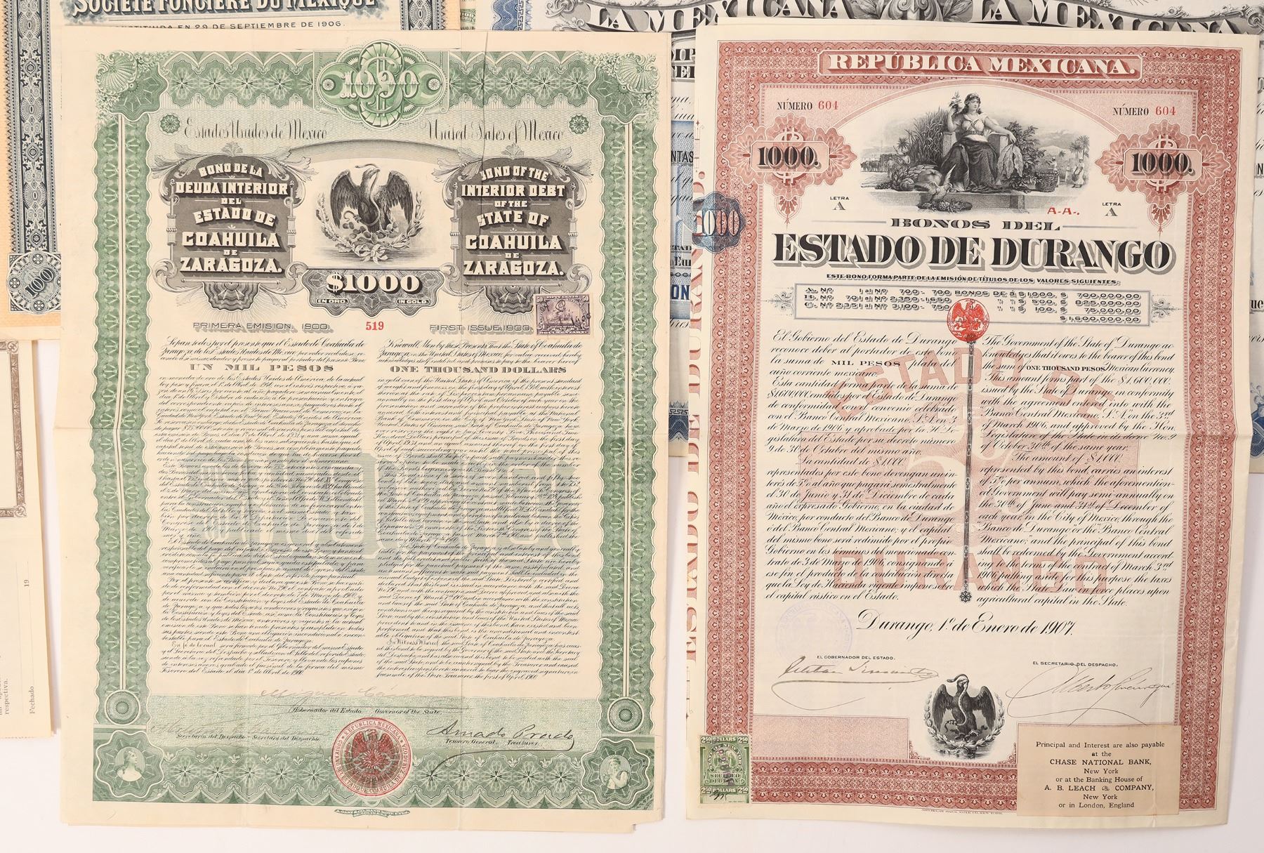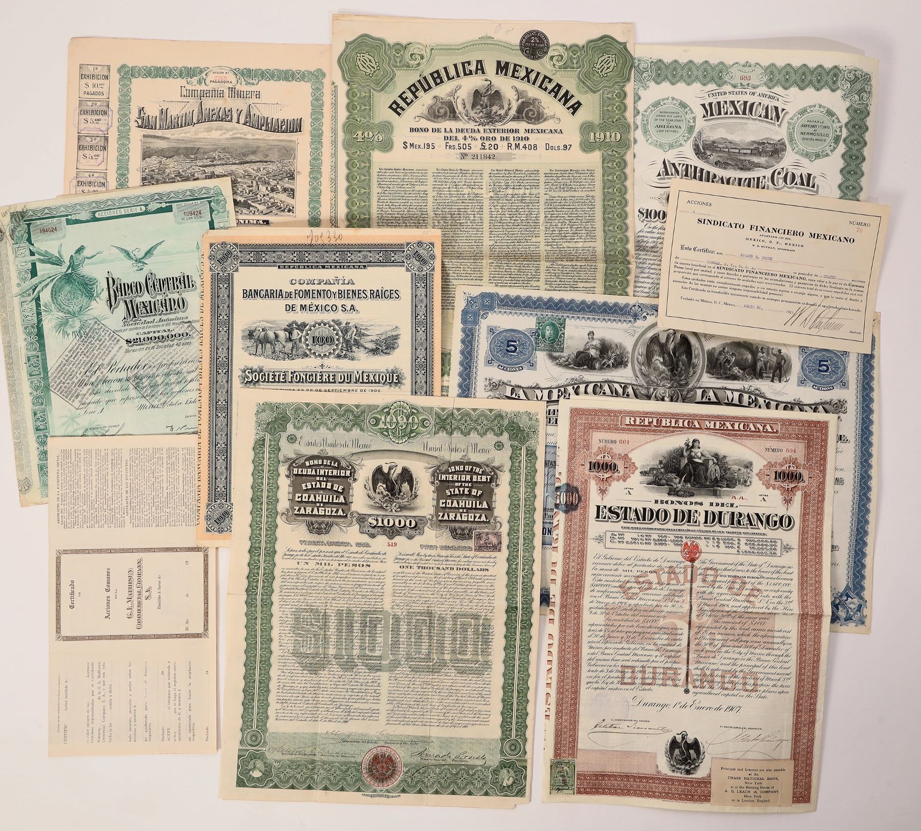 Lot of 11. Various mining stocks, all have coupons, some have revenue stamps imprinted & affixed. Printers include : American BNC, A. Gast & BNC, Britton & Rey and Waterlow & Sons Limited.