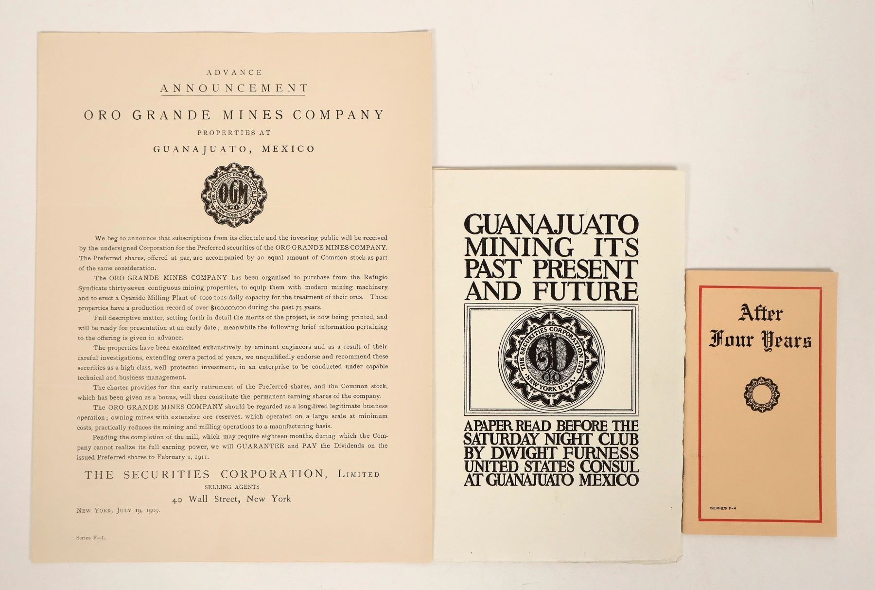 Lot of (3) different reports from the Guangiuato Mines in Mexico. (1) Report is listed under the Oro Grande Mining Company. Circa 1909-1910, 4-page booklet, (13) page report and (18) page report.