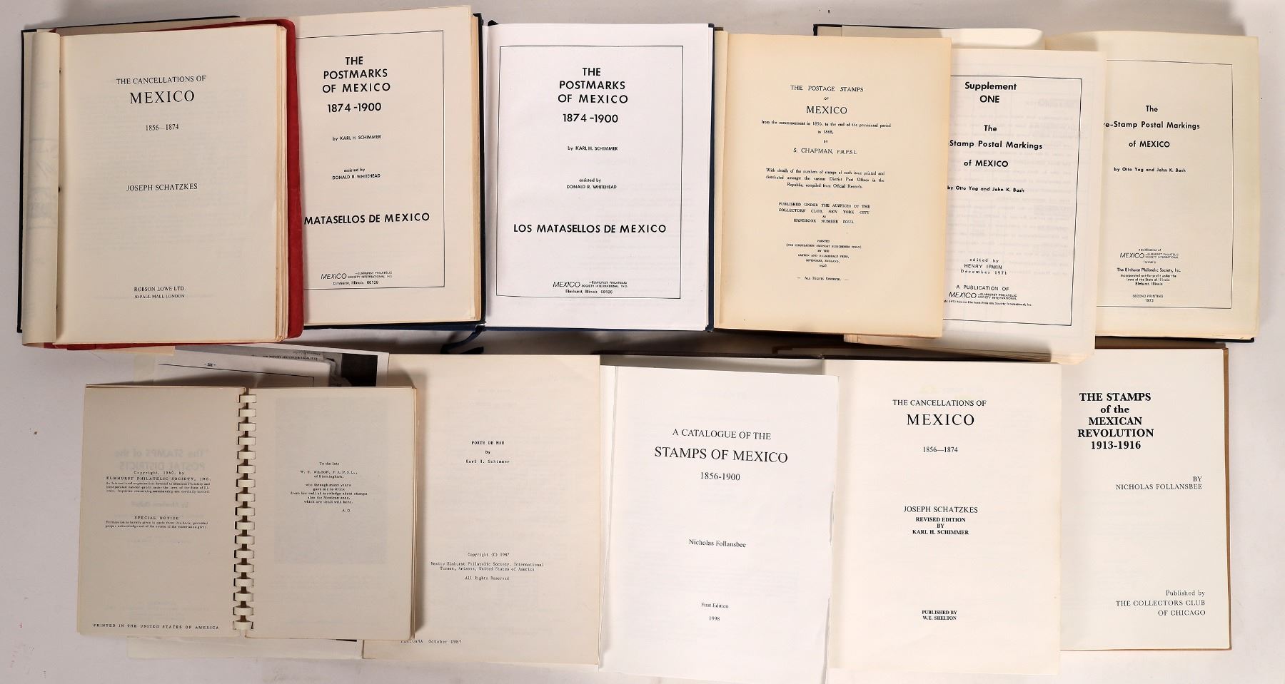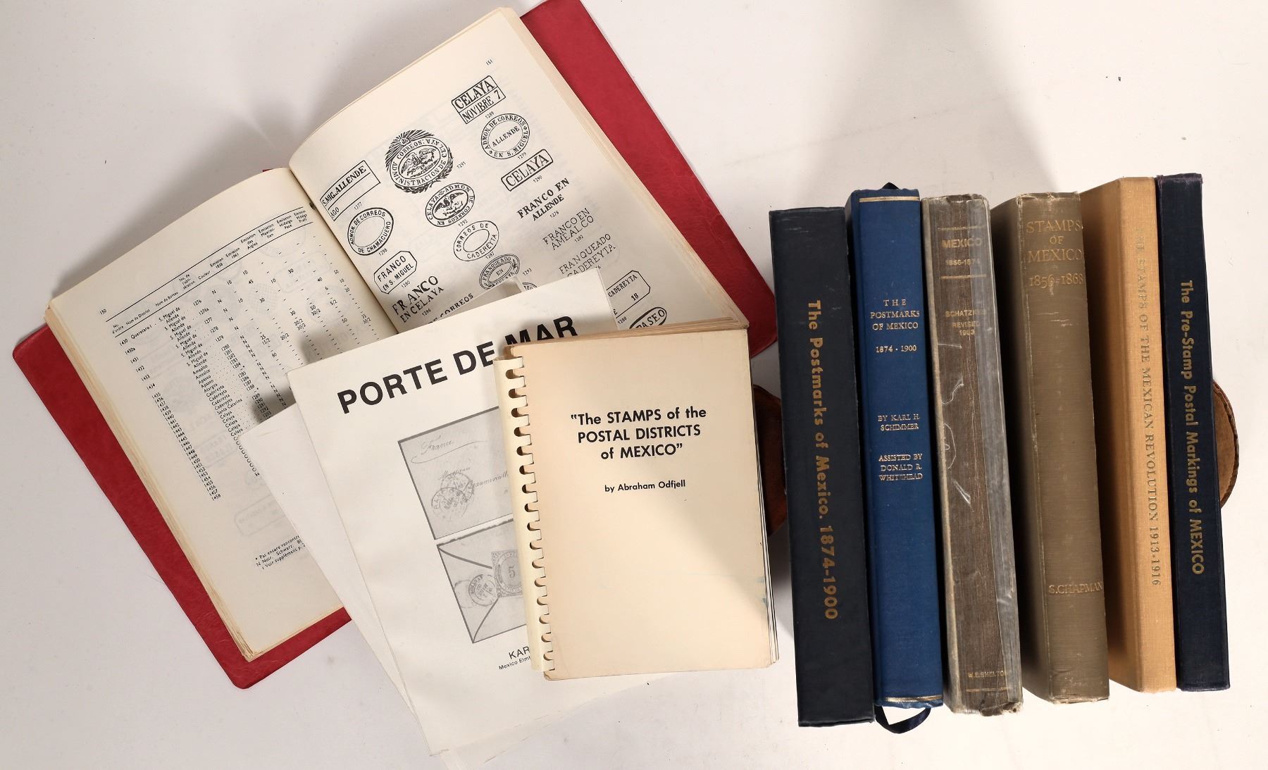 About 10 Mexico postmark & stamp references with info back to 1854 issues. 24 pounds, see photo.[ Mexico Gary Bracken Collection