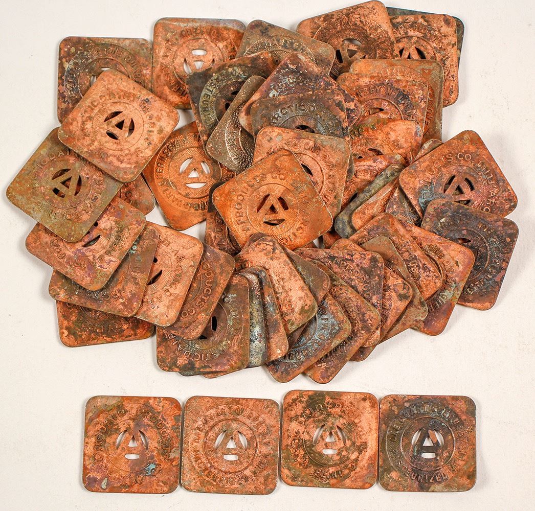 Tokens are stamped with "One Quart Guernsey Pasteurized Milk". All are 1" x 1". Date: Location: Michigan HWAC# 56766