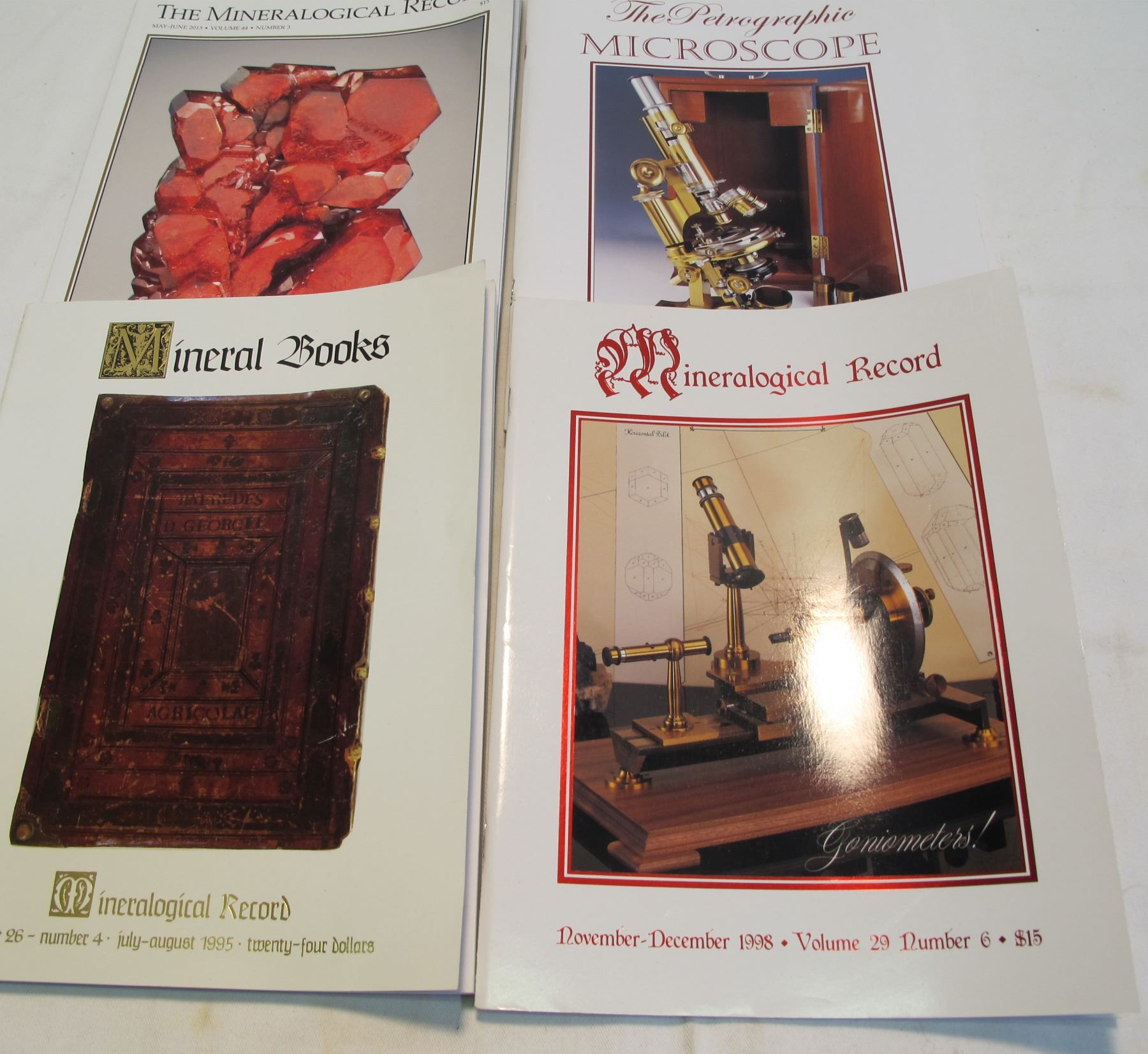 The Petrographic Microscope book (Nov.-Dec. 2013); The Mineralogical Record (May-June 2013). Beautiful glossy photos.