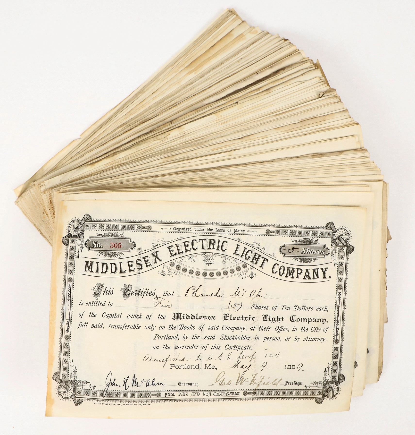Middlesex Electric Light Co. Stock Group, about 250, 1889