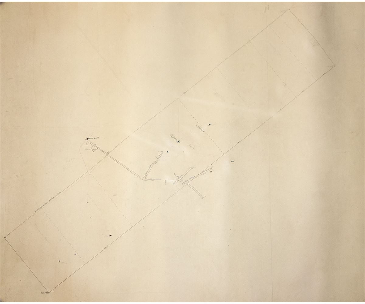 Map highlights N.W. Side Line Bonanza, including: main shaft, engine room; and Burke, Donnelley, Claybill, Morris, and Worcester leases. The Gold Issue mill, which was constructed on the Midget-Bonanza King property, ran for only 8 1/2 days in August when it was struck by lightning and was closed down. Measures 42 1/2" x 36 1/2", on cloth backed paper, in good condition.