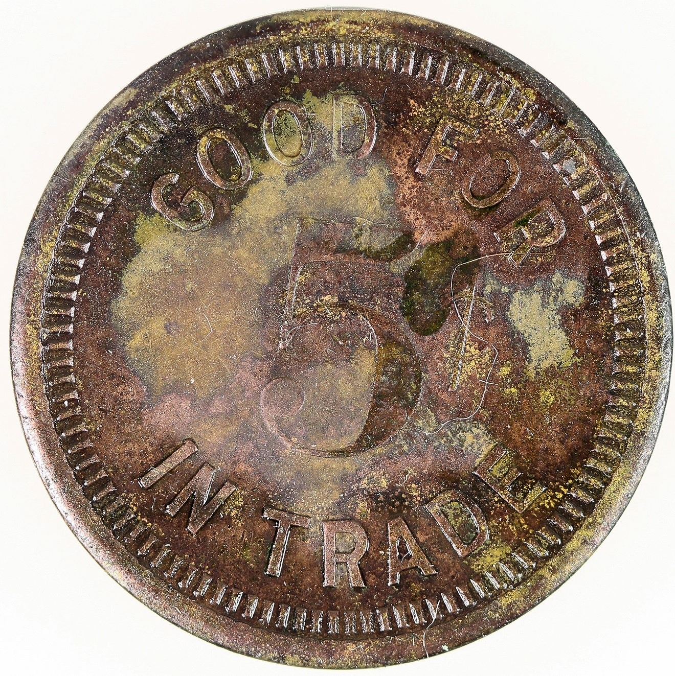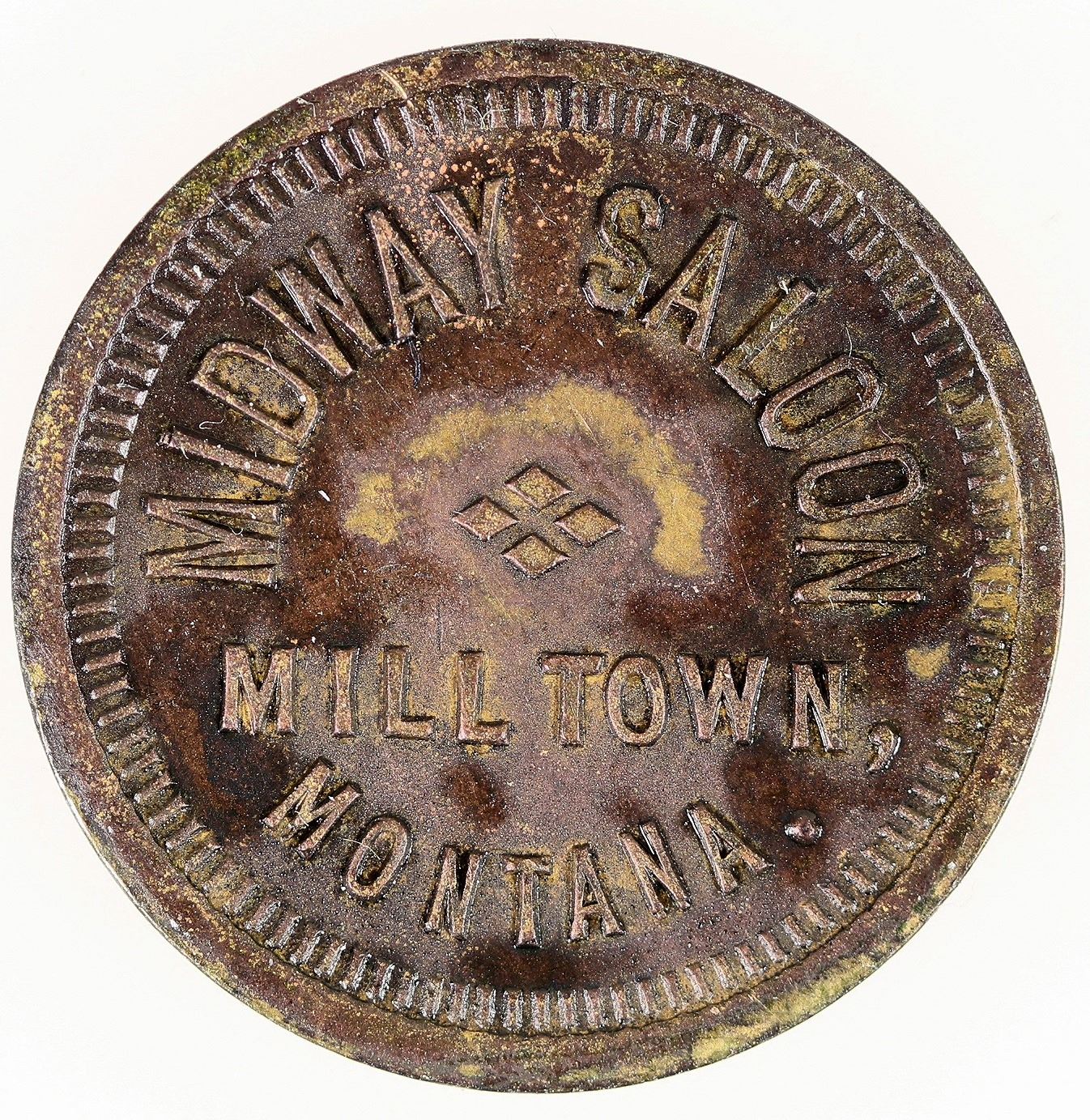 MIDWAY SALOON / MILLTOWN, / MONTANA. // GOOD FOR / 5¢ / IN TRADE; Br., rd., 21 mm.