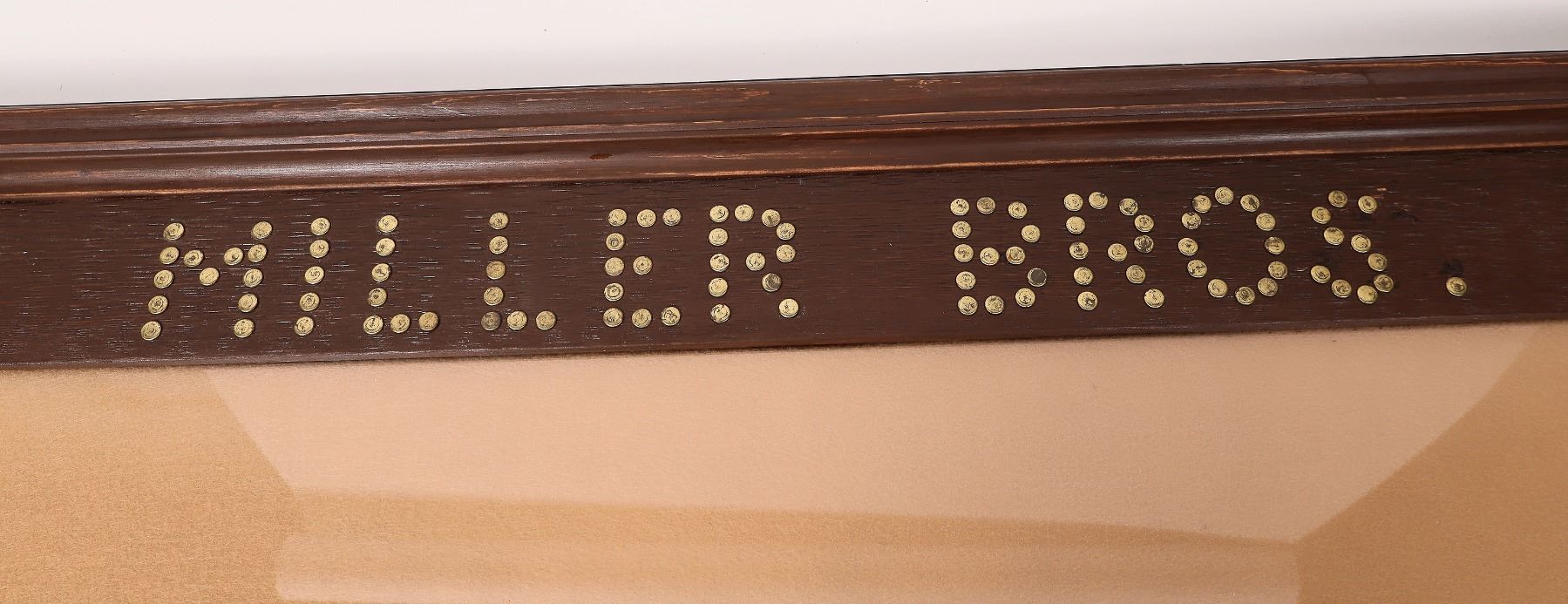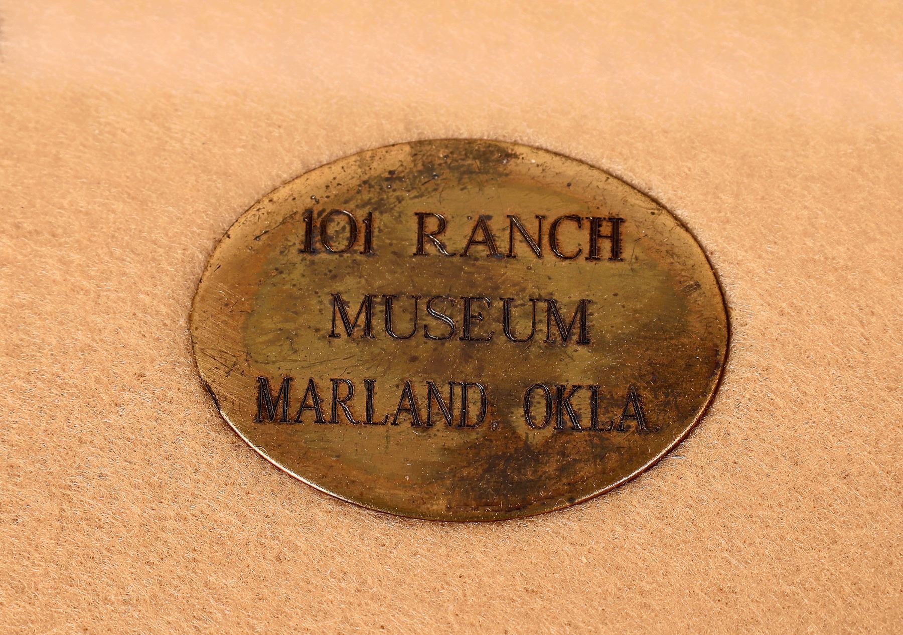The Miller Bros. began their Wild West shows in 1905, and toured it around the US and the world. There shows included some famous performers such as Geronimo, Bill Pickett, Lucille Mulhall, and George Elser. In 1916, the Miller Bros. combined and toured with Buffalo Bill Cody. By the 1930s, the Wild West shows declined in popularity and the Miller Bros. fell into debt. Most of their ranch land was divided and sold by the Federal Farm Security Administration. In 1938, a project began to convert the residence building on the 101 Ranch into a museum. This was a National Youth Administration project, part of the New Deal. However, by 1942, the war effort became more important, and the museum project was canceled. This piece was probably meant to be part of that museum, but was sold off when the project was stopped.