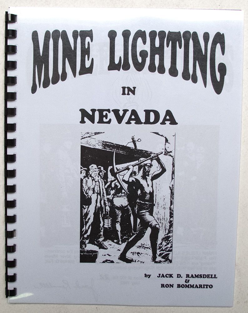 Copy of a rare book by Jack D. Ramsdell and Ron Bommarito. The inside cover indicates that this is "Limited Edition of 100 No. 32" and is signed by Jack Ramsdell. Includes many illustrations and photographs of lighting systems, especially candlesticks and lanterns, in early Nevada mines. 31pp bound in plastic.City: County: State: NVDate: