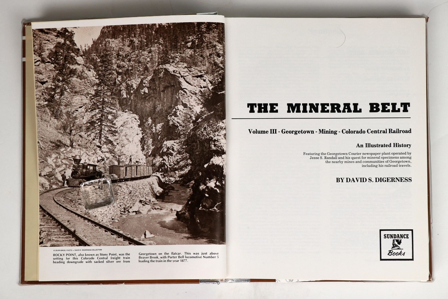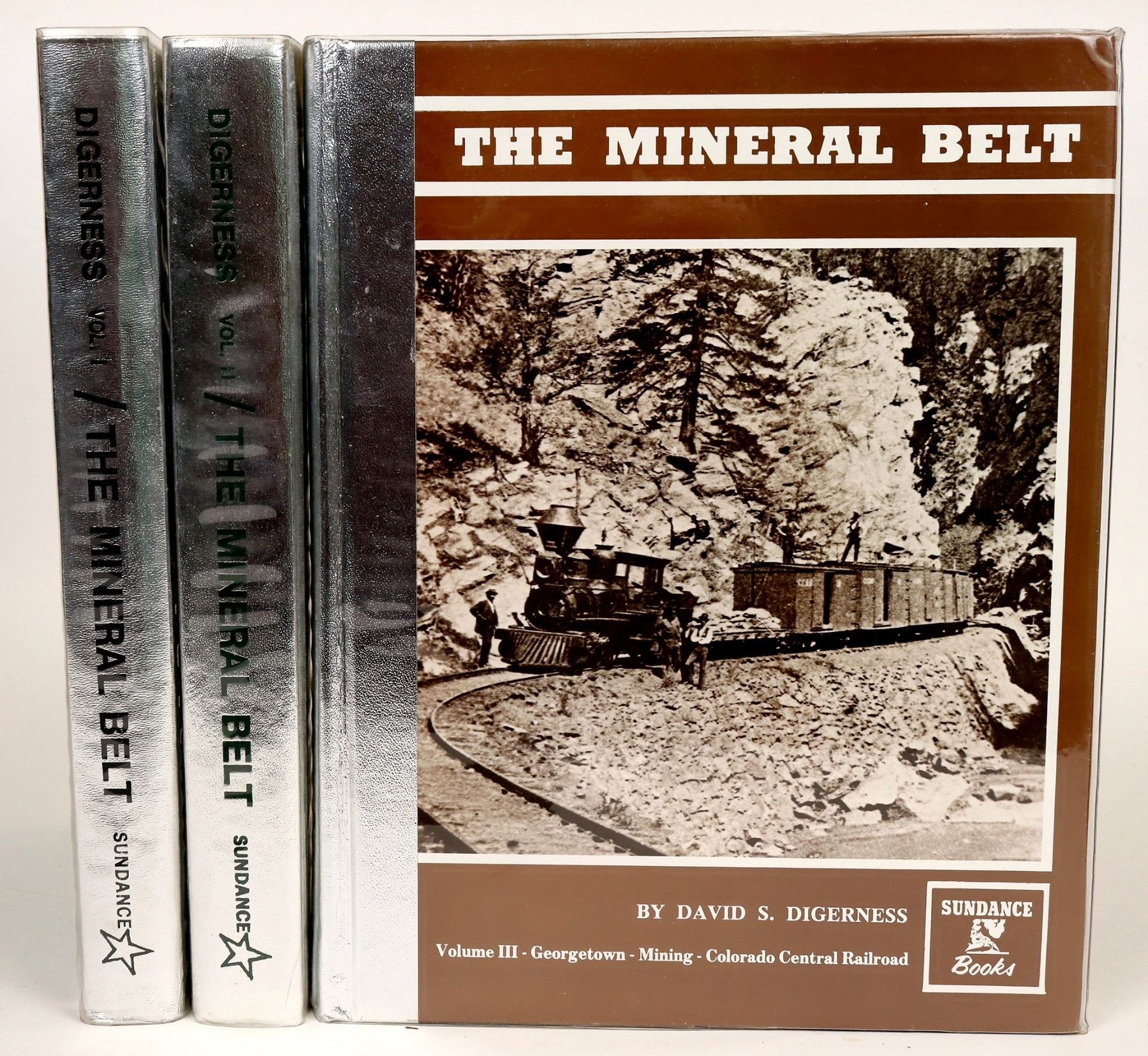 The Mineral Belt in 3 volumes, 1977, 1987 signed by author David Digerness and numbered 1987, 1982. All 1st editions. Hundreds of photos, maps, drawings etc. Covers the mining and railroads in and around Georgetown, CO extending to Boulder and Cripple Creek. New condition. [