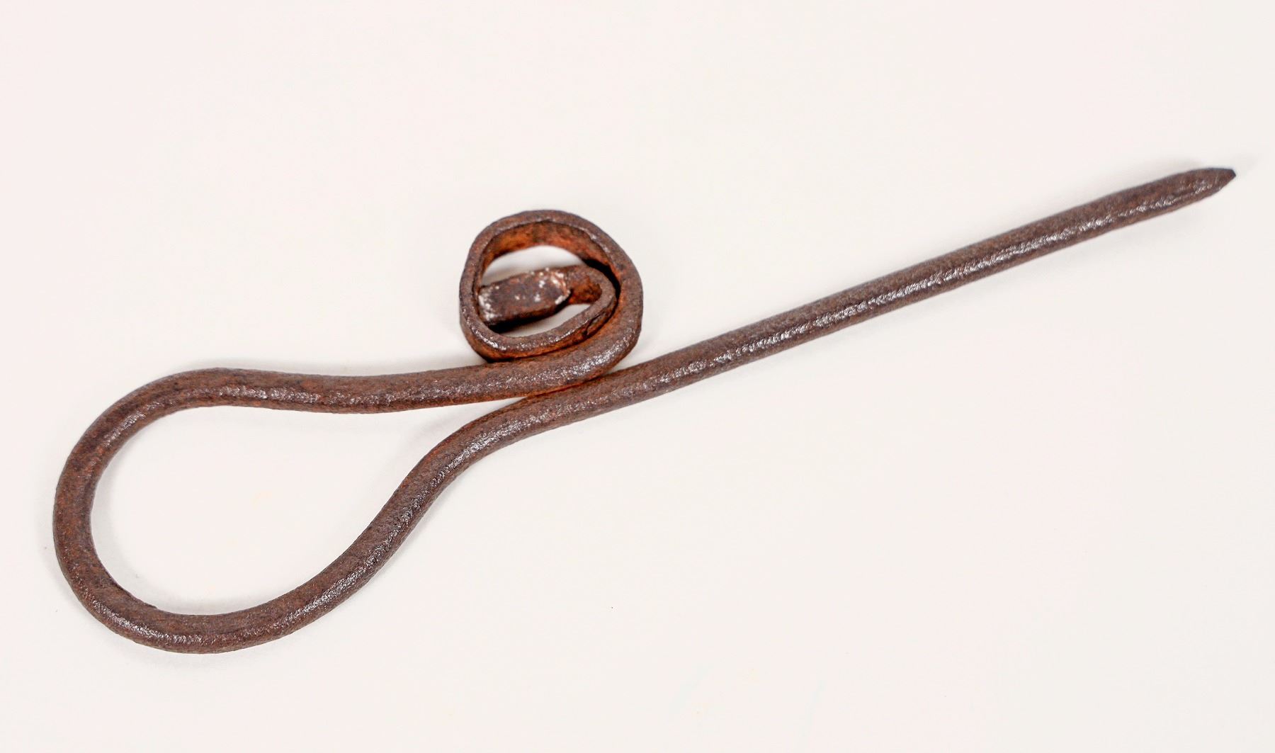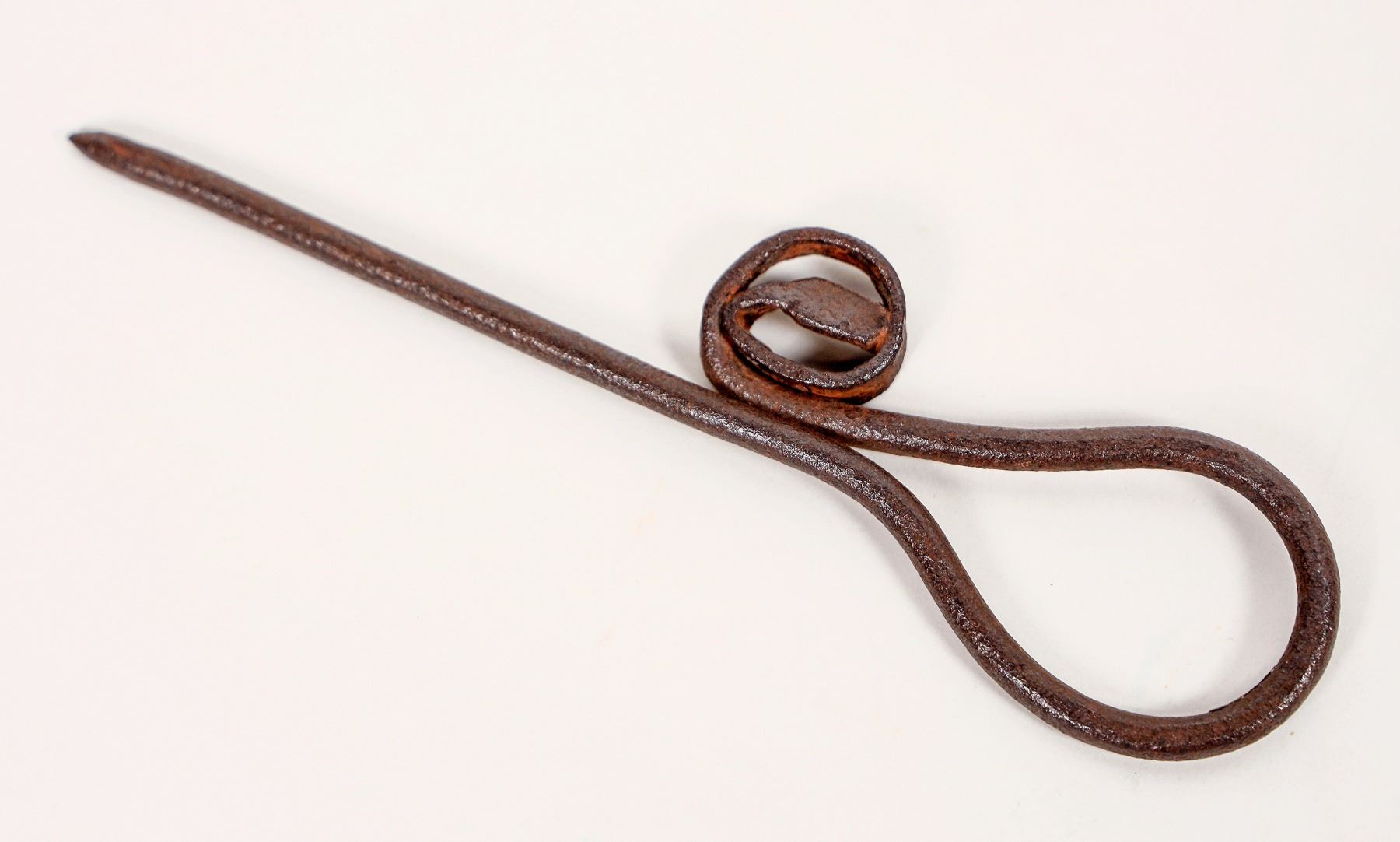 Miner's candlestick with shallow candle holder. It measures 9" in length and is in very nice condition. Please see photos for more details.