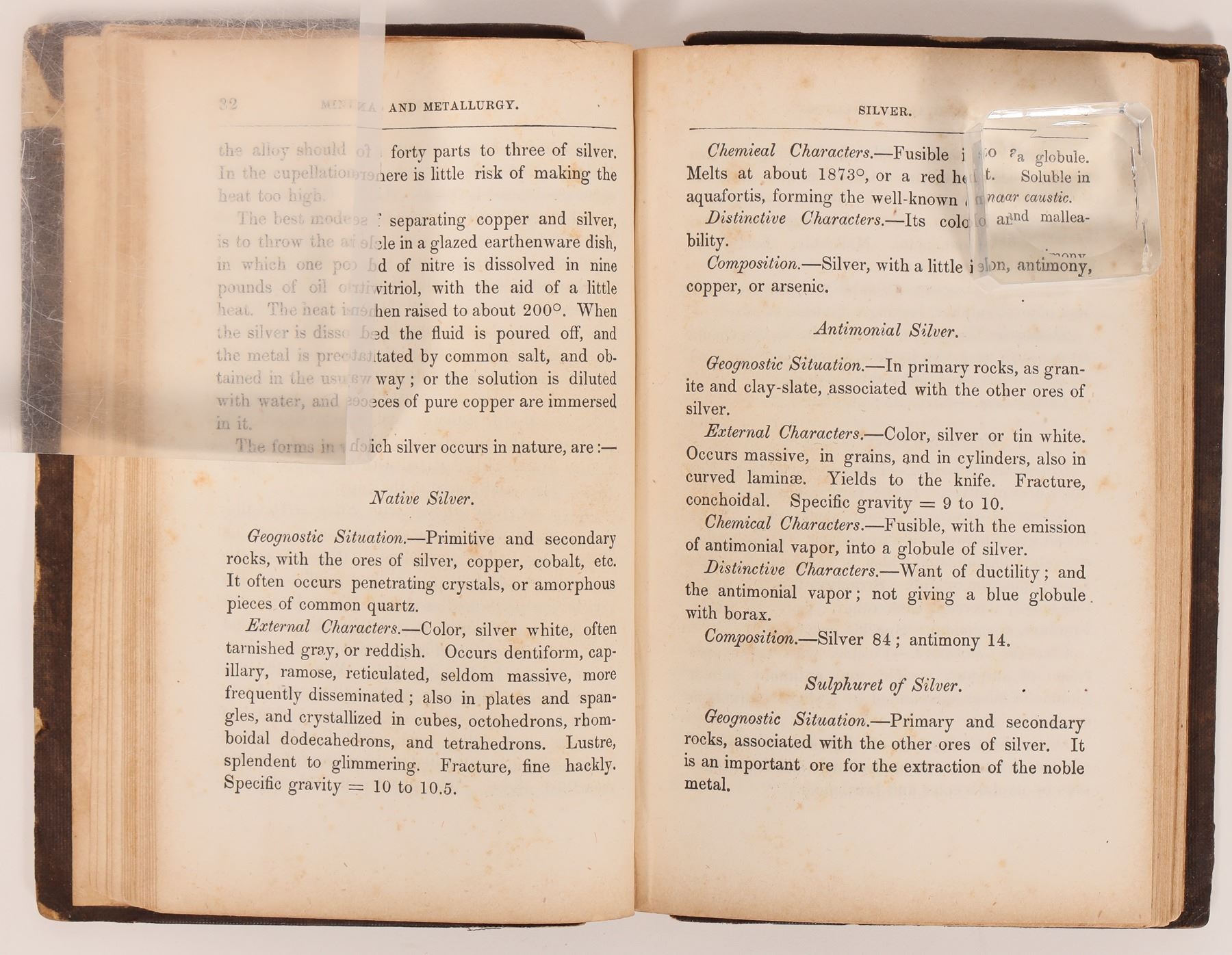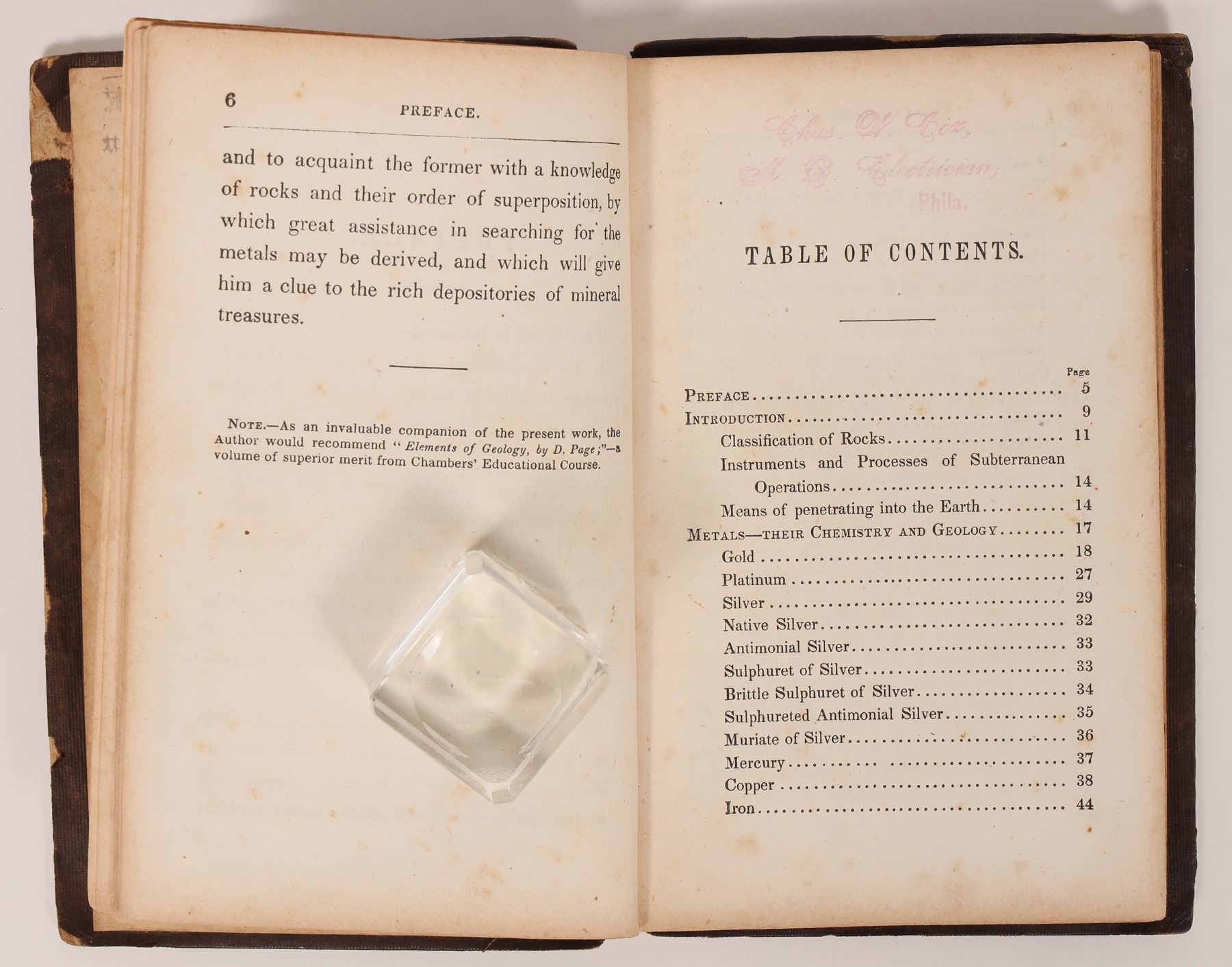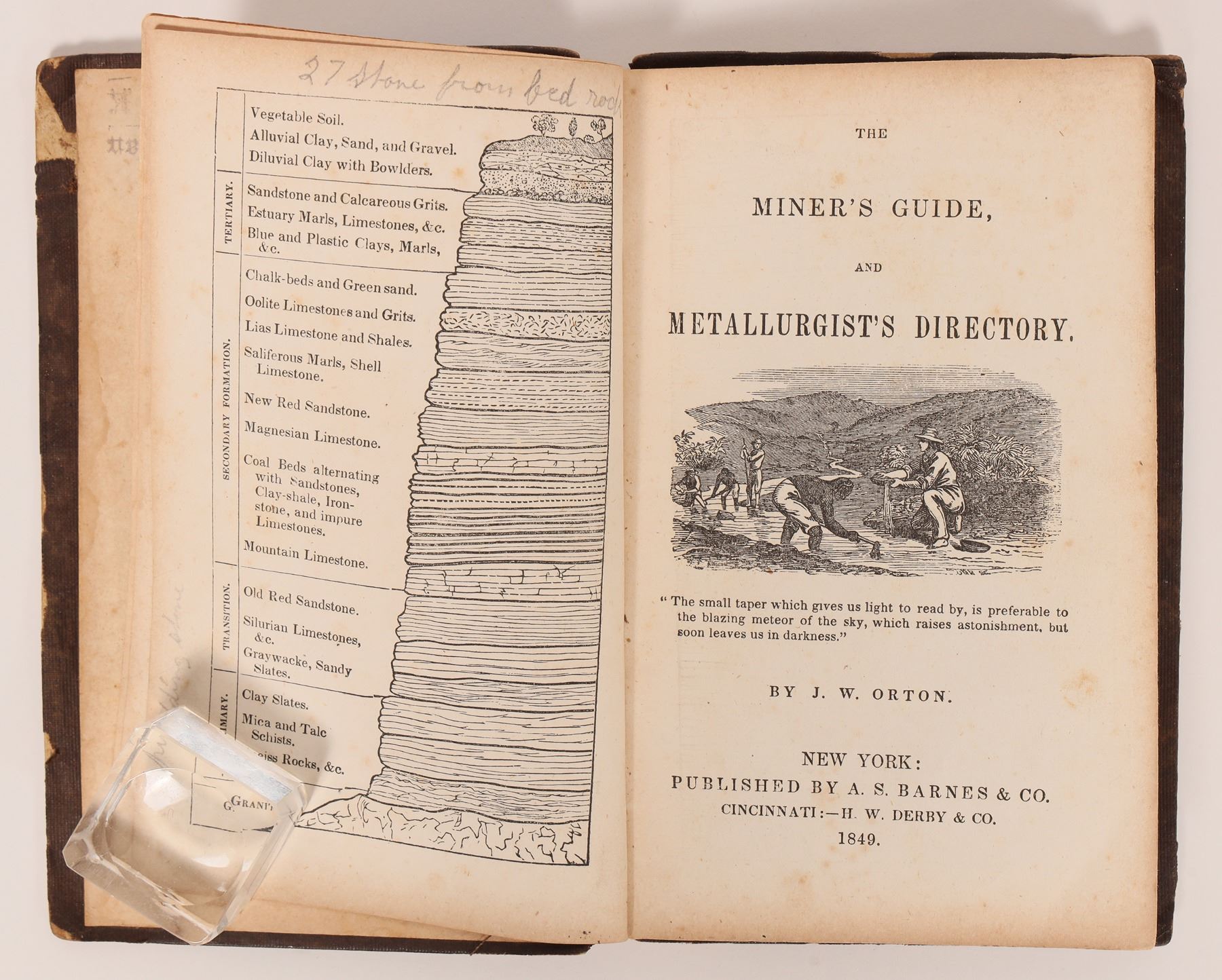 The Miner's Guide & Metallurgists Directory 1849 by J.W. Orton. The table of contents has the book divided by the types of metal. Because the publication of this book coincided with the California Gold Rush, it was a huge success. The book is 86 pages and has some bump damage and small spine separation. Please see photos for more details.