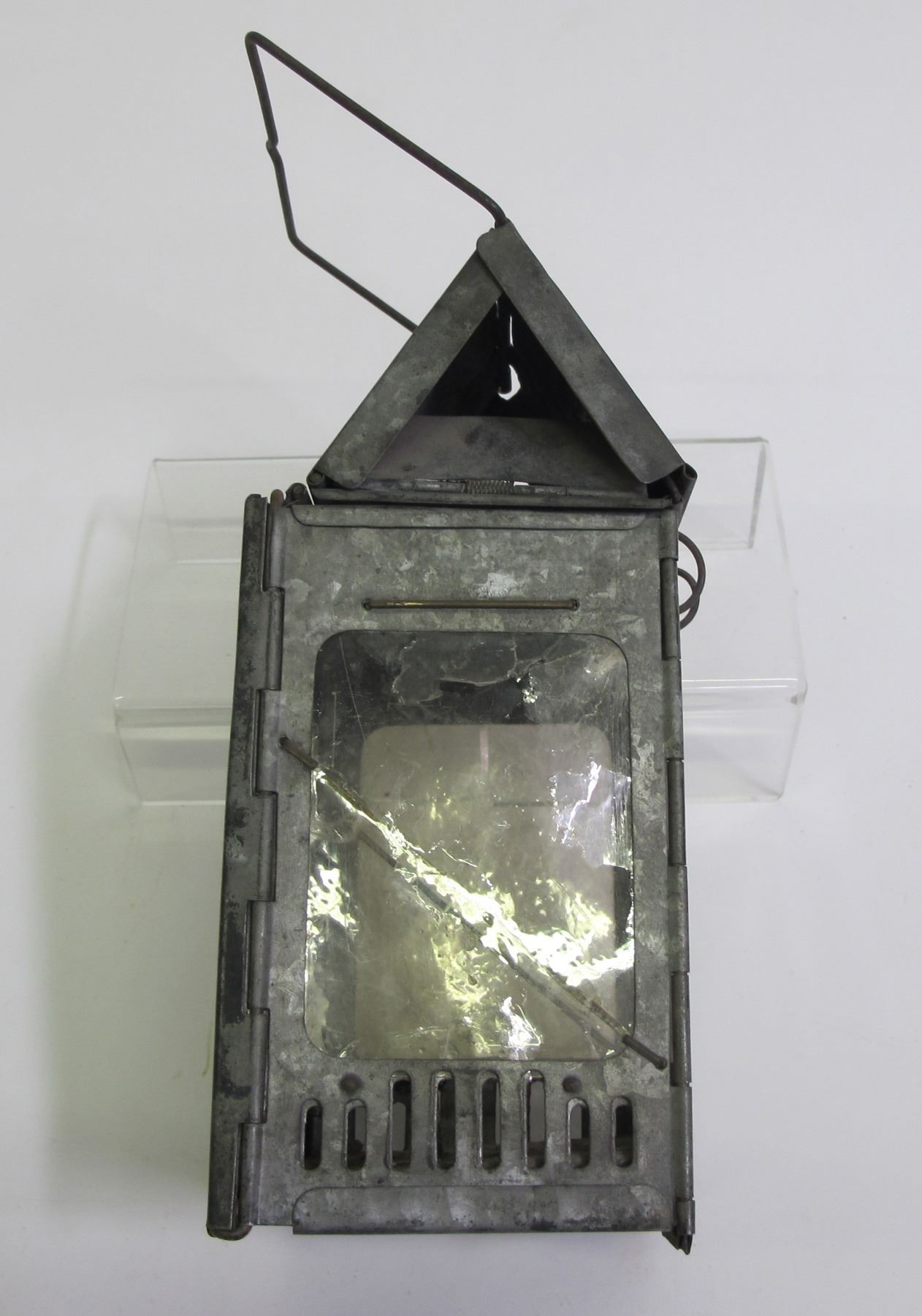 This Miner's lamp has Mica Plates, 4.5" w. x 14.5" tall, includes handle. Has "The Stonebridge/Folding Lantern/ PAT'D November 20, 1908.