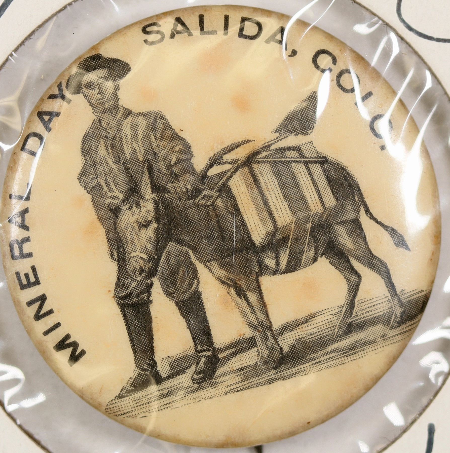 Miner with burro. "Mineral Day Salida, Colo. 31 mm.