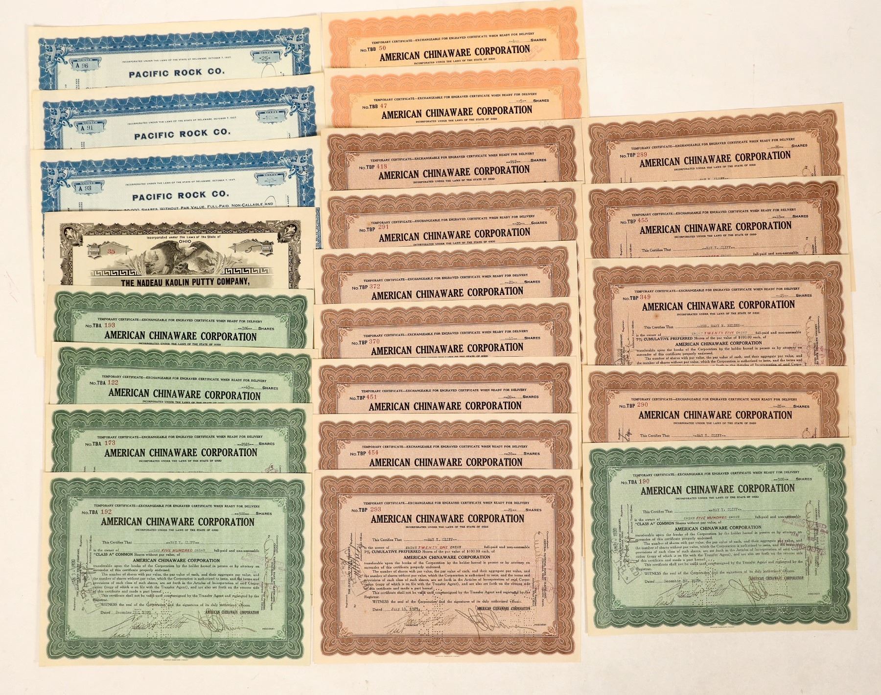 Issued-1929 11x brown, 2x orange and 5x green American Chinaware. 1x 1906 Nadeau Kaolin Puttty, 3x 1930 Pacific Rock.