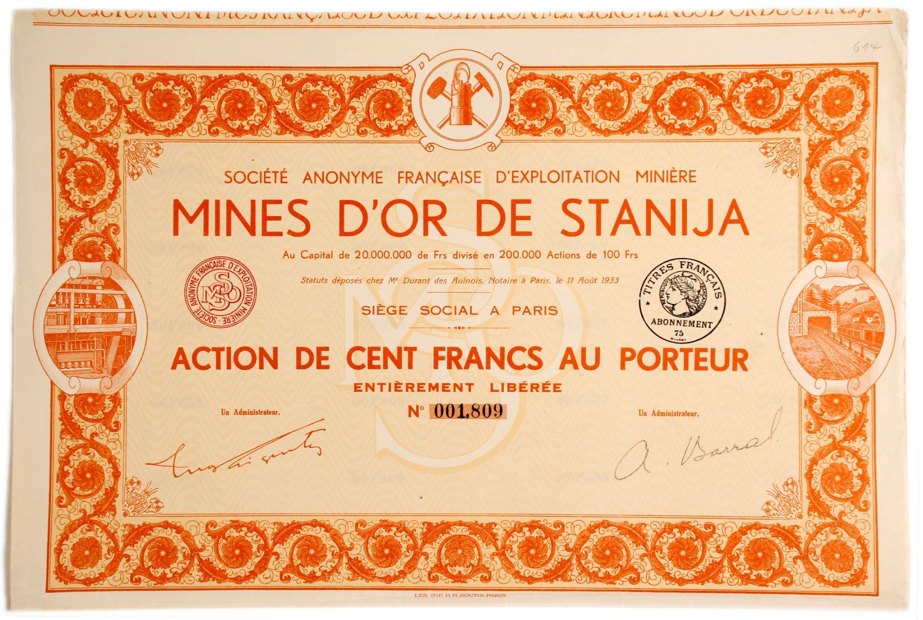 1 total certificate. Signed and NOT canceled; all revenue coupons attached; in very good condition, nice bold orange background and trim.