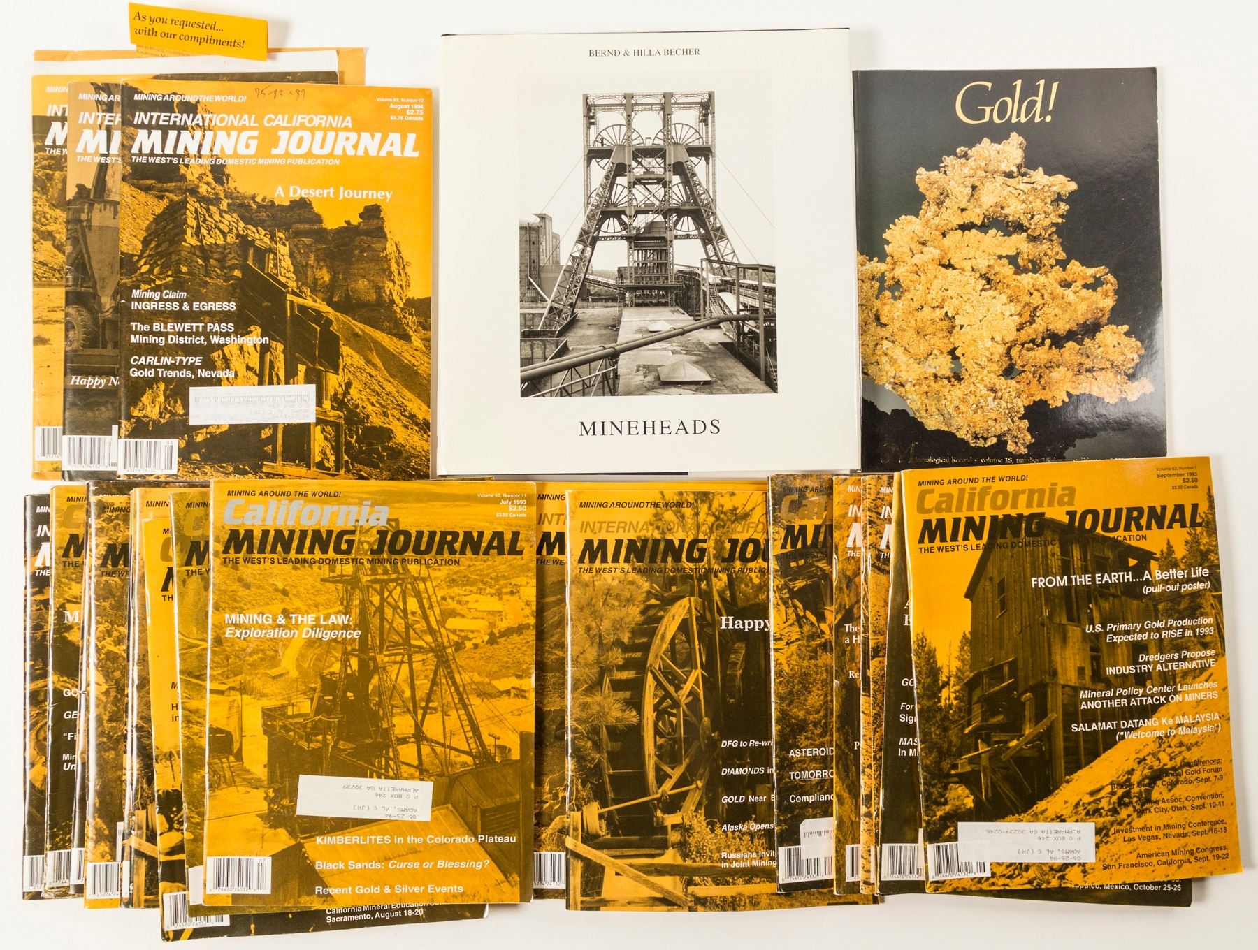 Hardcover Mineheads, highly illustrated. Approx 30 issues of California Mining Journal c. 1993-1994