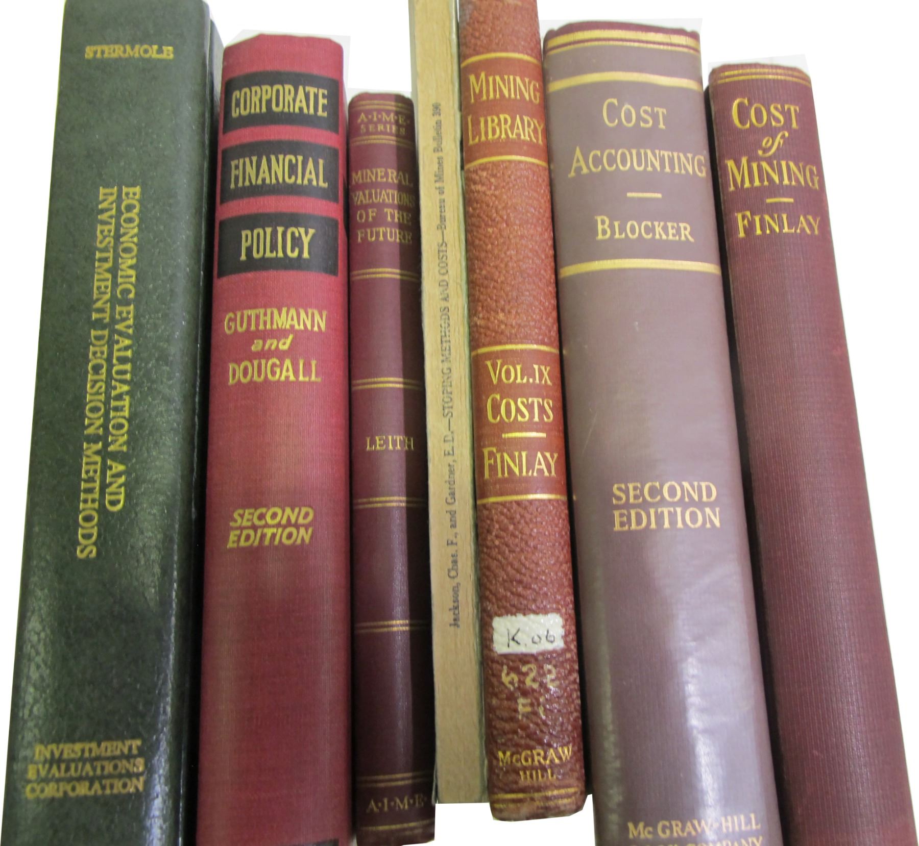 7 hardcover books. Mining Library, Volume 9, The Cost of Mining; Mineral Valuations of the future; Cost of Mining; Corporate Financial Policy; & more.