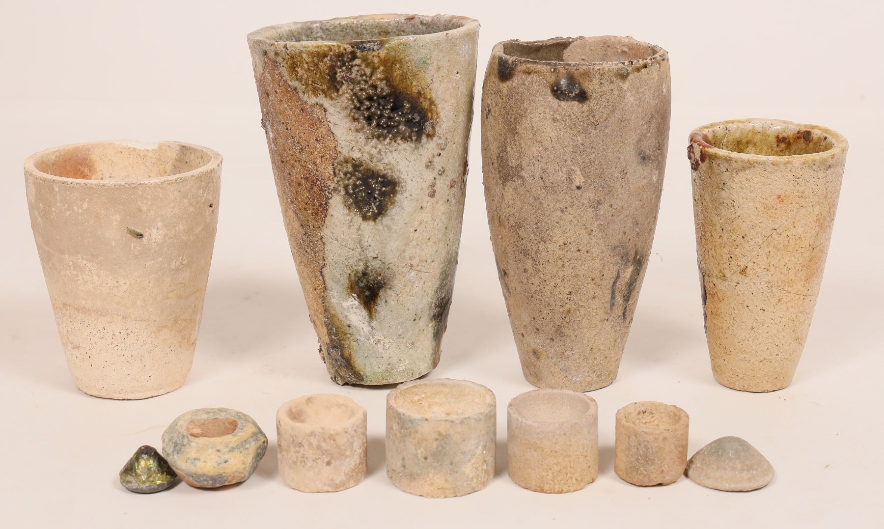 Mining crucibles (4) and (5) cupels. The crucibles are marked as being made in Morgan, England. There also cupels that measure about 1.5". All appear in good condition. Please see photos for more details.
