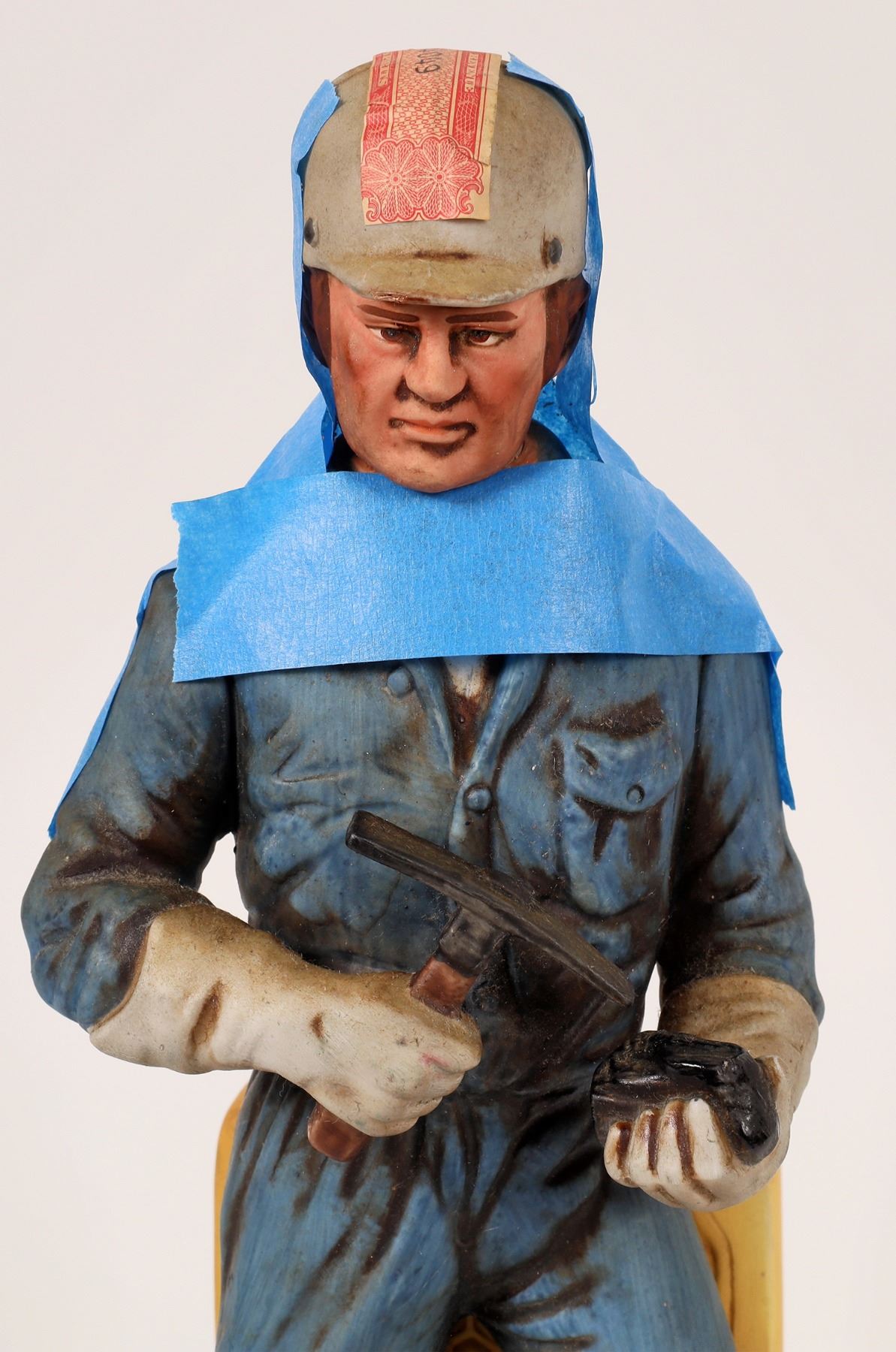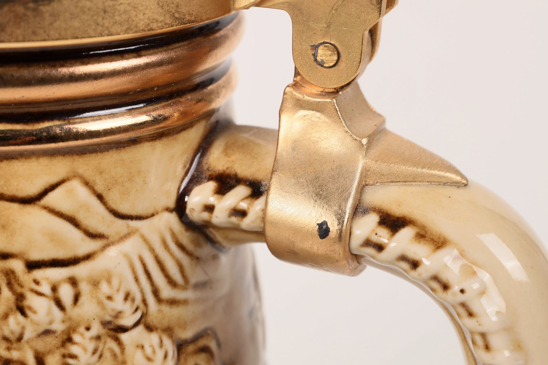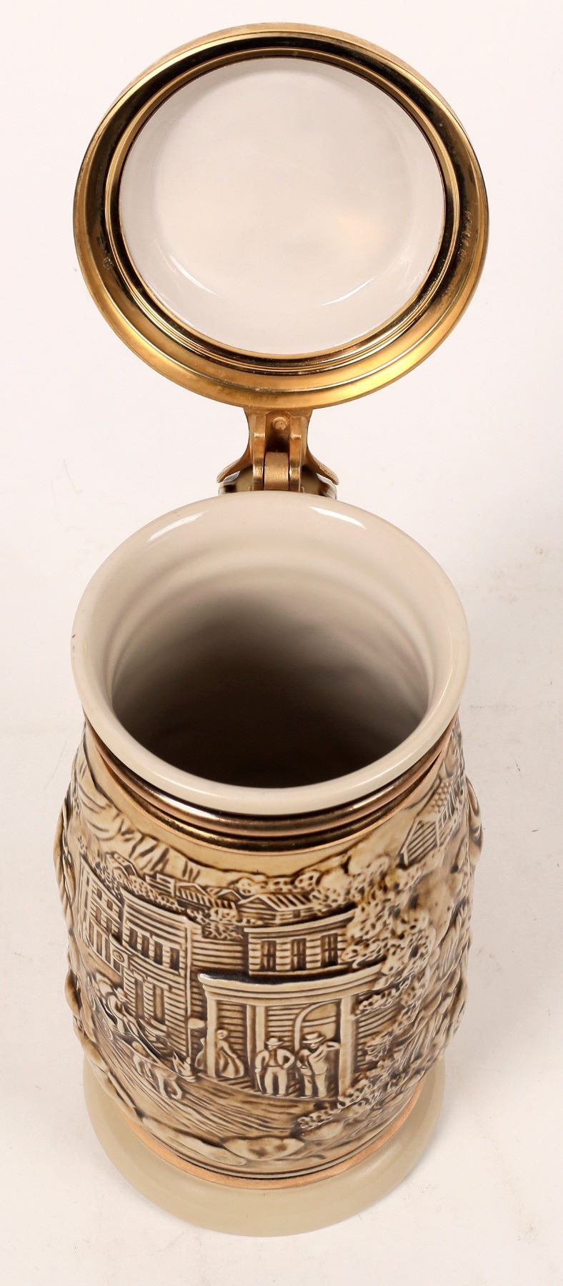 Old Bardstown Bourbon Surface Miner decanter without contents, 13" tall. Avon 1987 The Gold Rush Stein with panning miner and Western street scene, 8.75" tall.