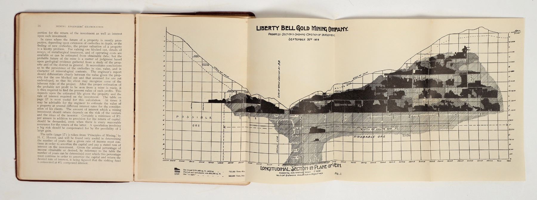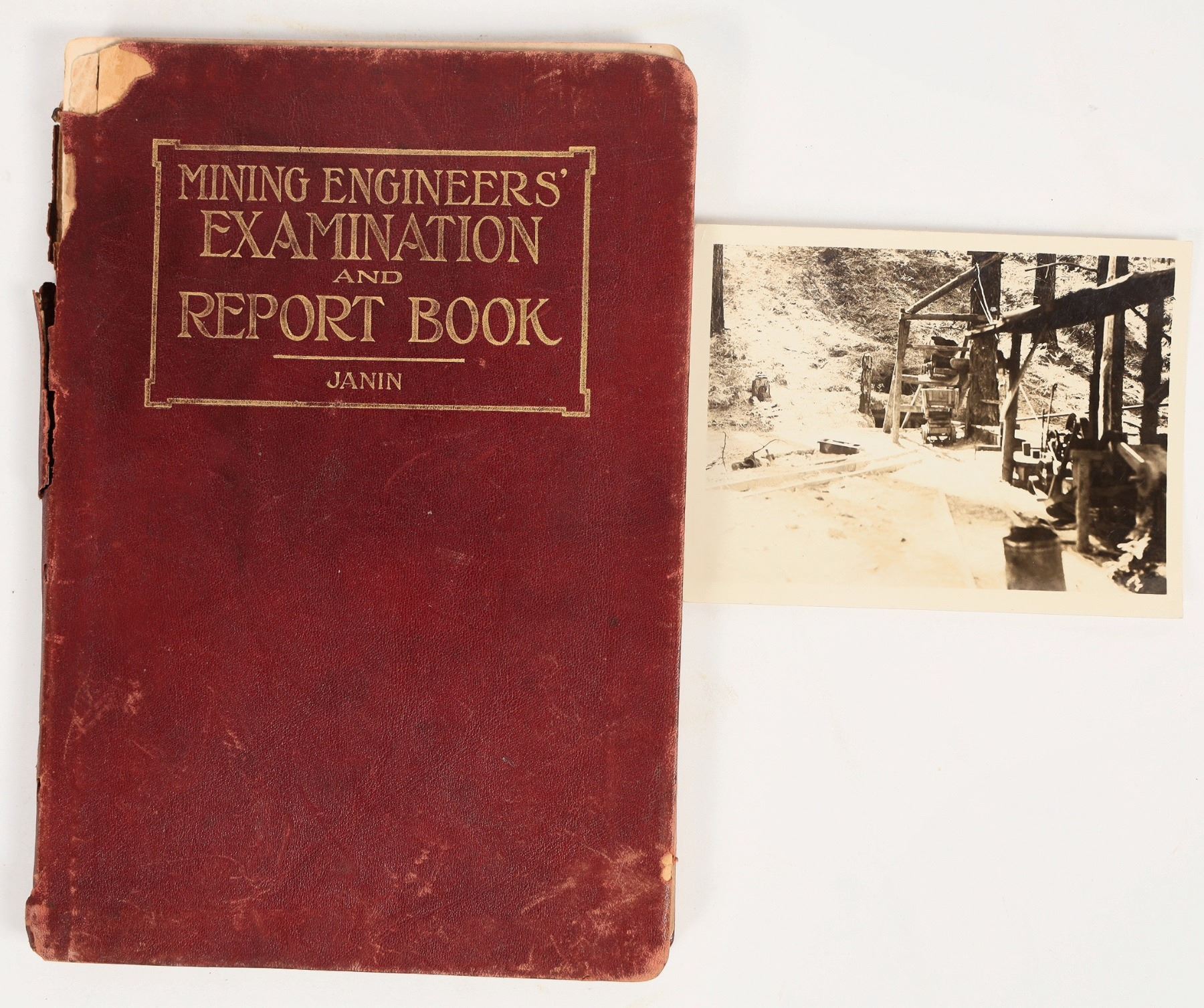 Signed on inside page. Part I. Mining & Scientific Press, 1913. 94pp. Spine coming apart, some pages loose. Very rare. 8 x 5.5" Blank pages in the back meant for notes have notations. One fold-out mine cross section. Some of the covered topics include: Examination of placers (alluvial mining operations); Title examination (legal aspects of mining claims); Classification of igneous rocks (important for locating mineral deposits); Representative costs of operations; Weights and measures, including specifics for iron and steel; Construction materials (quantities needed for buildings); and tables such as the horsepower of water, and relative values of wood, coal, and oil.
