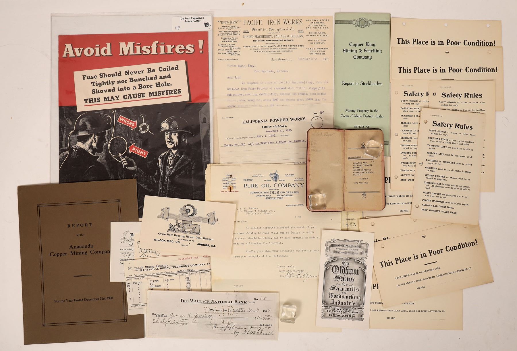 Mining ephemera, including a notebook, warning signs receipts, letters etc. Please see photos for more details.