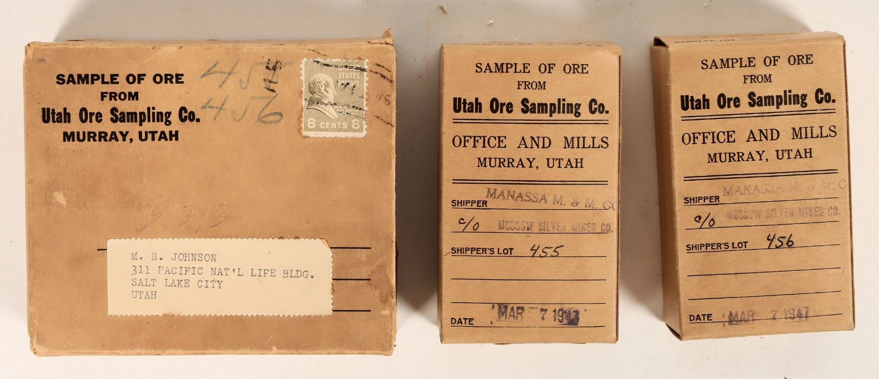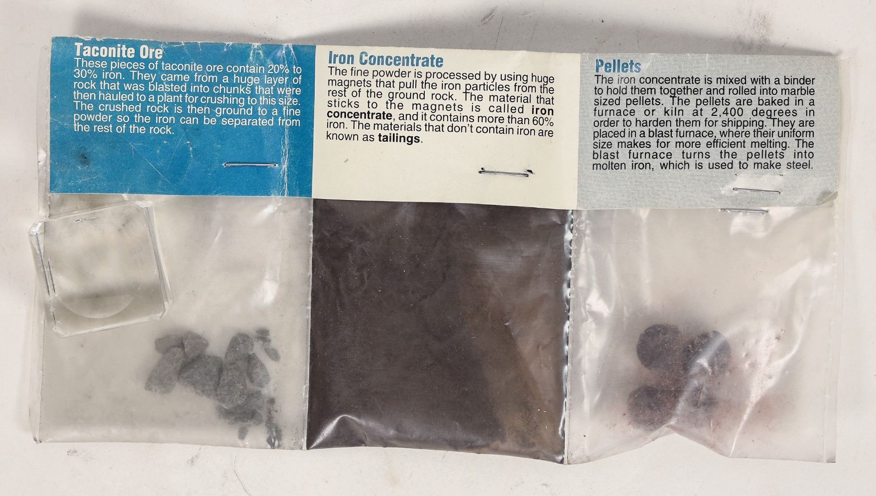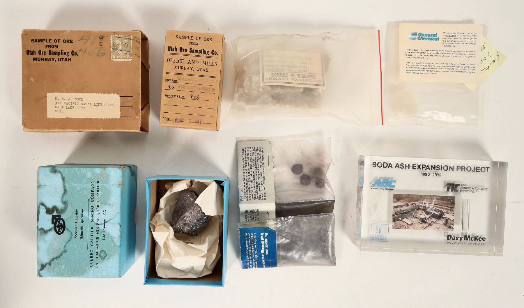 6 mining ore samples as promotions from various mining companies. General Chemical, Utah Ore Sampling, Quebec Cartier Mining, Iron Mining Assoc. of MN, William W Werner, The Industrial Company. From the Noel Kirshenbaum Collection, a prominent mining metallurgical engineer and corporate manager. [ Utah