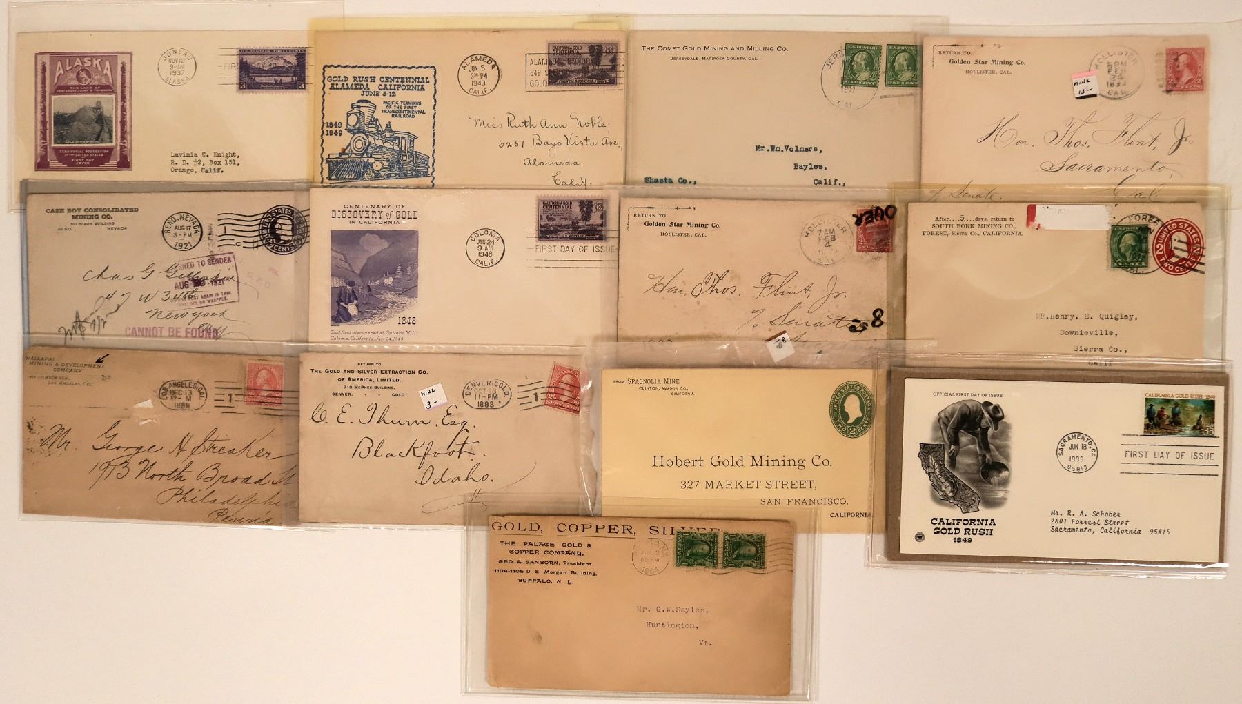 A mining company was founded by James W. Marshall at Sutter's Mill in Coloma, California. The news of gold on January 24, 1848 brought an influx of people seeking their fortune: Mining companies sprang up. California's Gold Rush of 1849, First Day of Issue with scene,is postmarked June 18, 1999 To name a few of the mining companies that opened for business were 1)Hobert Gold Mining Co. SF CA. 2)The Gold and Silver Extraction Co. of America, Limited, Denver Co., October 1898. 3)South Ford Mining Co.,Golden Star Mining Co. February 1899. 4)Wallapai Mining and Development Co., Dec 1989. 5)The Palace Gold and Copper Company, Buffalo, N.Y. 1904. 6)Gold Rush Centennial Alameda California, June 1912. 7)The Comet Gold Mining and Milling Co.November 1937 8)Alaska First Day Cover with Scene. 1949 Centenary of Discovery of Gold in California, Jan 1948. Case Boy Consolidated Mining Co.. Augs 1921. Golden Star Mining Co., Hollister CA. Feb 1833.