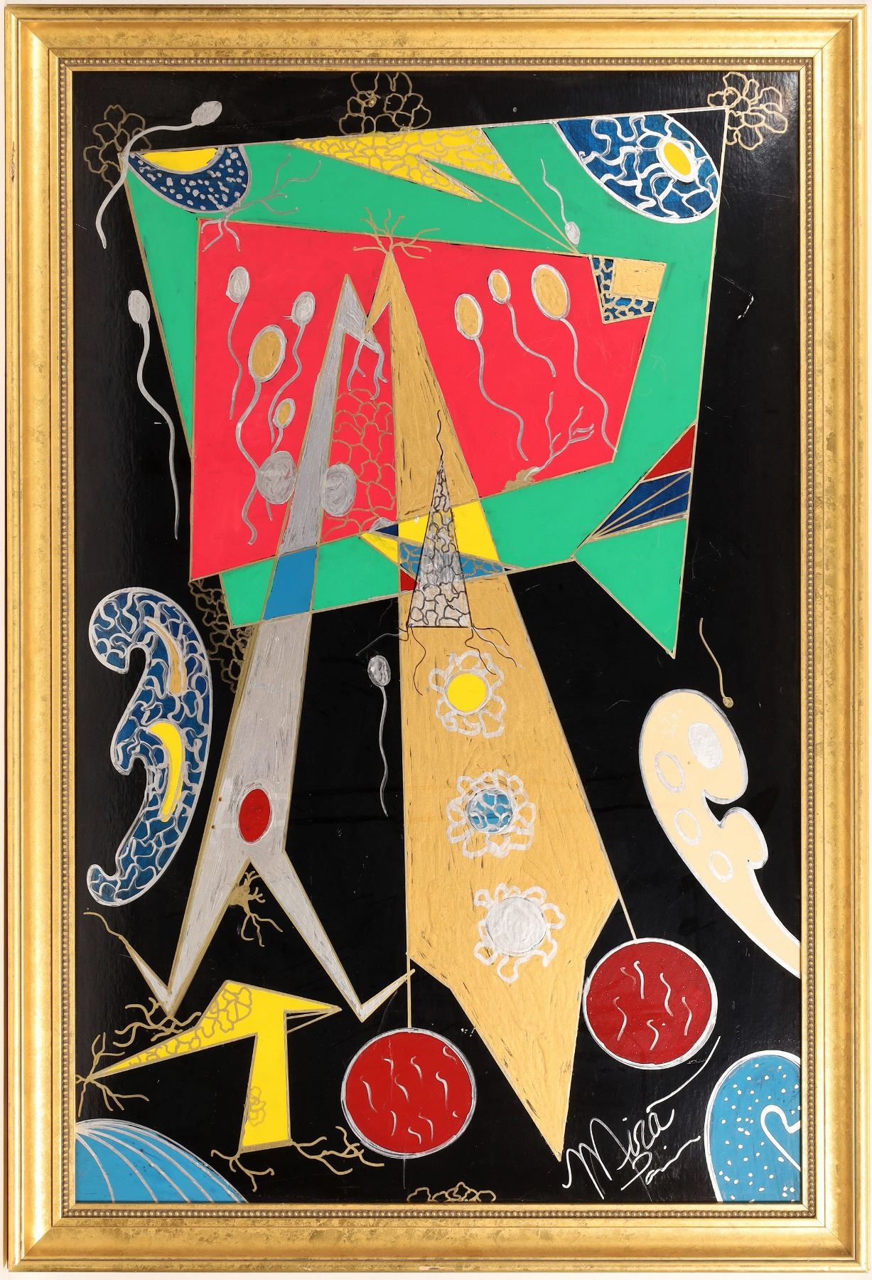 Several "Mira Paris" signed pieces in the same abstract style as these have sold online in recent years, many on Ebay and Live Auctioneers. Prices realized for these pieces varies widely, some selling for several thousand dollars. The online description all listings we located provided the same information on the artist, almost verbatim. We have not been able to verify the existence of this artist or the existence of any "Mira Paris Museum" in our research. This artist is not listed on reputable online artist databases, nor in our research library reference books. While these are original paintings, signed by an artist, it is not clear who the artist really is.