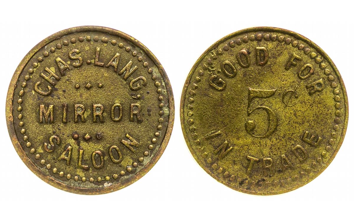 Obv.: Chas Lang / Mirror / Saloon; Rev.: Good for / 5c / In Trade; NCS genuine.
