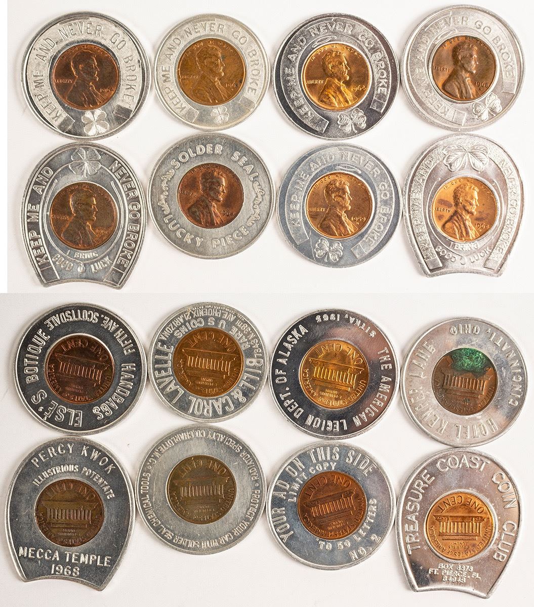 Eight Lincoln Memorial encased cents from various places. (Daniel Manasselian Collection) State: City: Date: ID# 77873