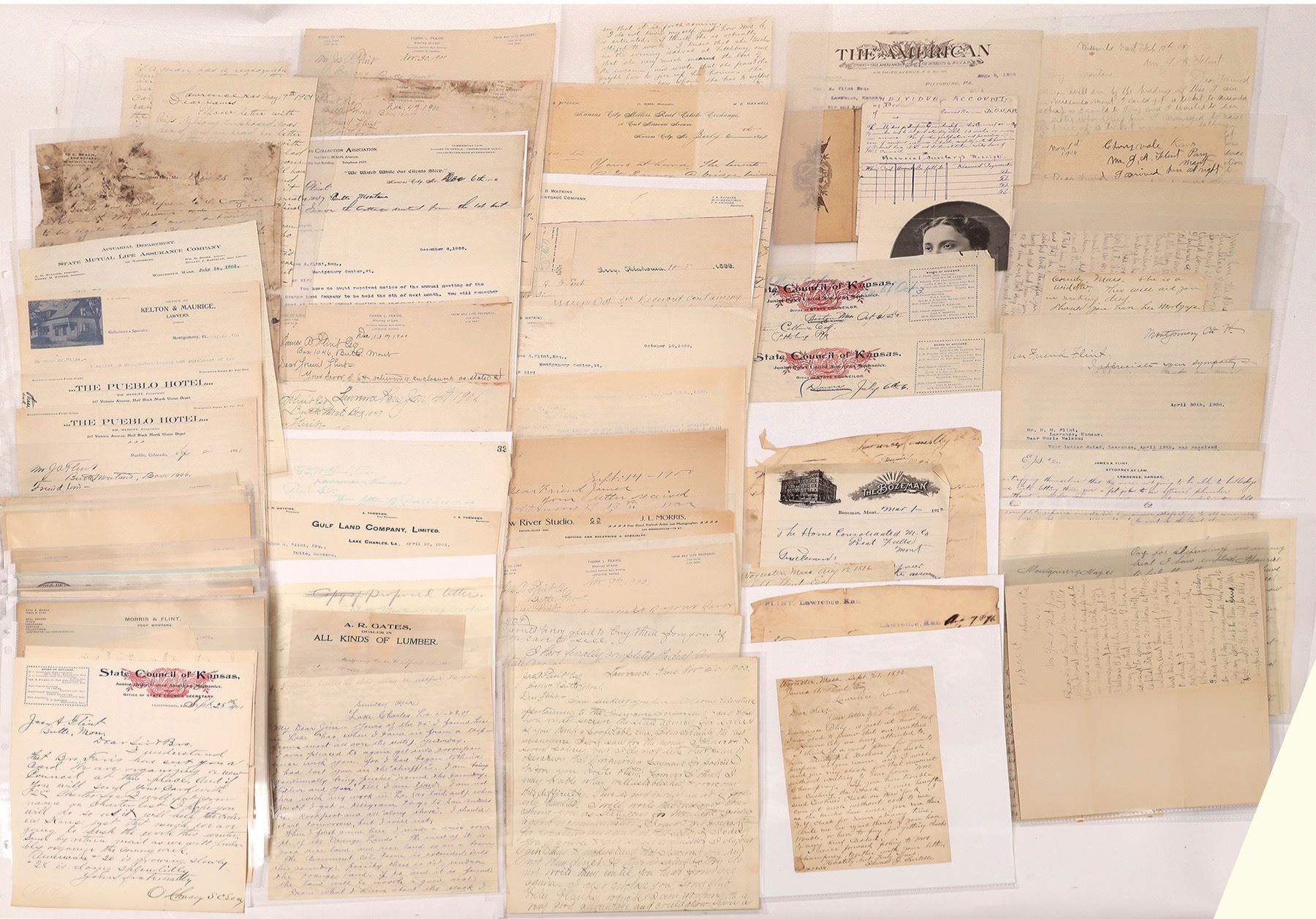 Lot of miscellaneous letters, mostly from people in Montana. Most of these letters were written to Mr. James Flint, an attorney in Montana. These letters mostly discuss business and and/or personal affairs of Mr. Flint. Some of these letters are written on letterhead from various businesses, but most are not. All letters are contained in 8.5 x 11 page protectors. There are at least 80 letters in this collection, possibly more. Good condition.