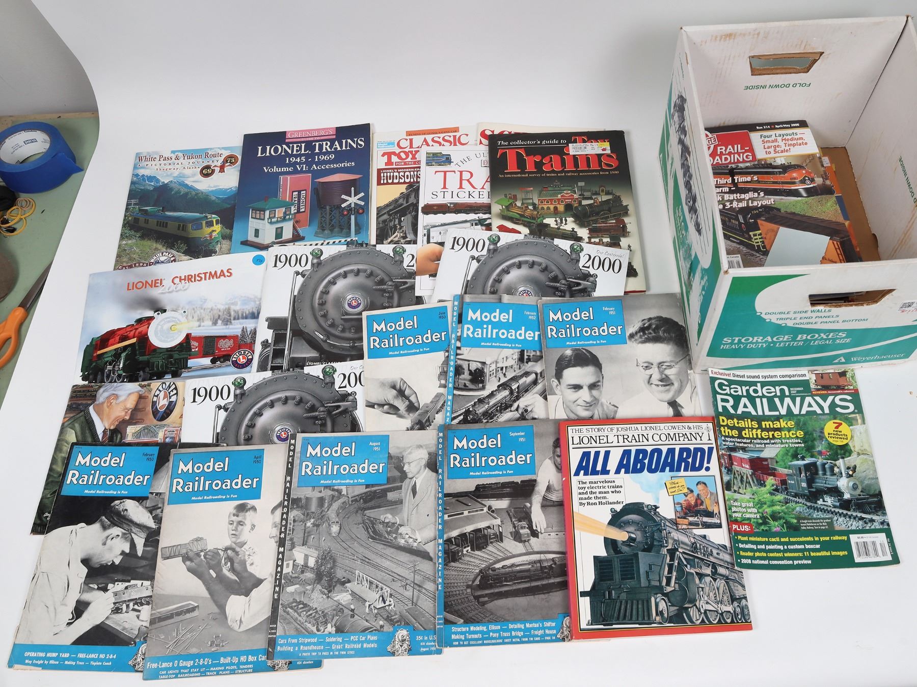 Scenery For Model Railroads, Classic Toy Trains, Modern Lionel catalogs, Freight Car Lettering Plan Book, Marx Western Playsets, Modern Lionel Trains, 2016 American Flyer catalog, 7x 1951 Model Railroader, Collector's Guide to Toy Trains and more train related. Other model magazines.