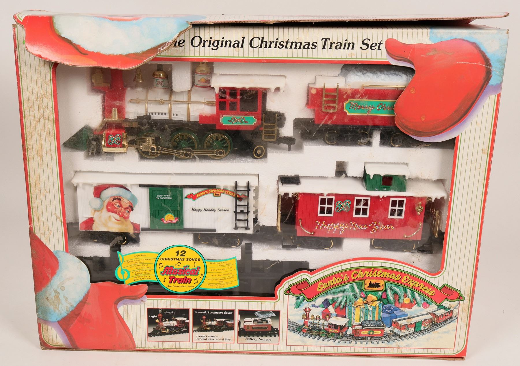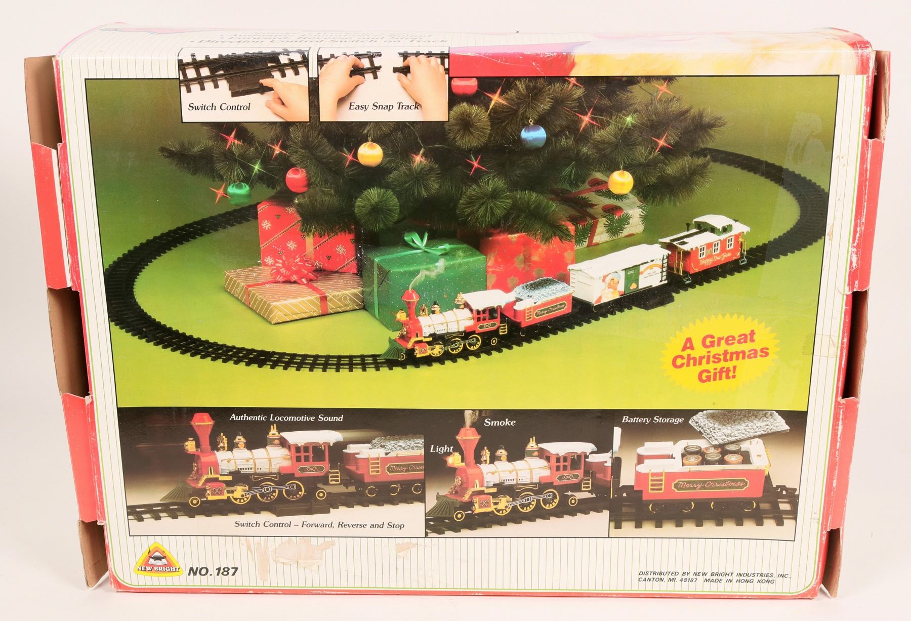NIB. New Bright Industries 2-6-2 complete Christmas train. Battery operated , smoke, operating light, locomotive sound and plays 12 Christmas songs.