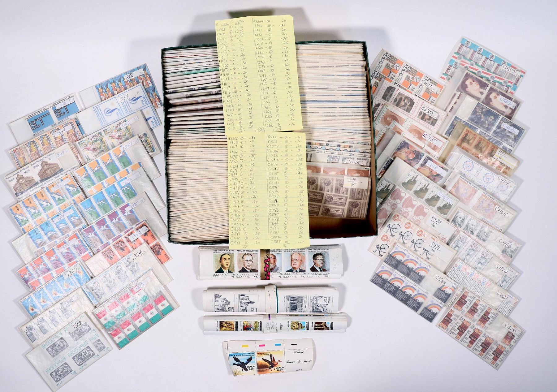 Thousands of modern Mexico stamps, never hinged. Singles, blocks and sorted by Scott number, #647-1376 with various airmail issues.