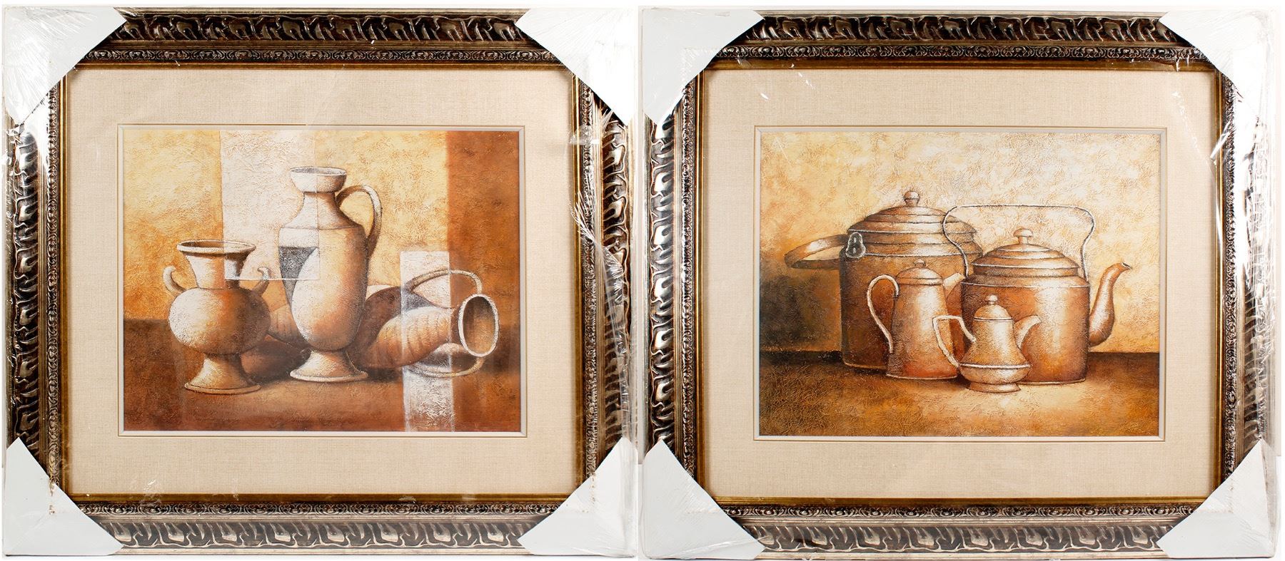 Both works measure 16"x 21" (28"x 34" framed and matted), still life lithograph of copper pots and pitcher by an unknown artist (no visible signature). Beautiful and complimentary pieces in new condition, nice frame, ready for display. Date: Location: HWAC# 56609