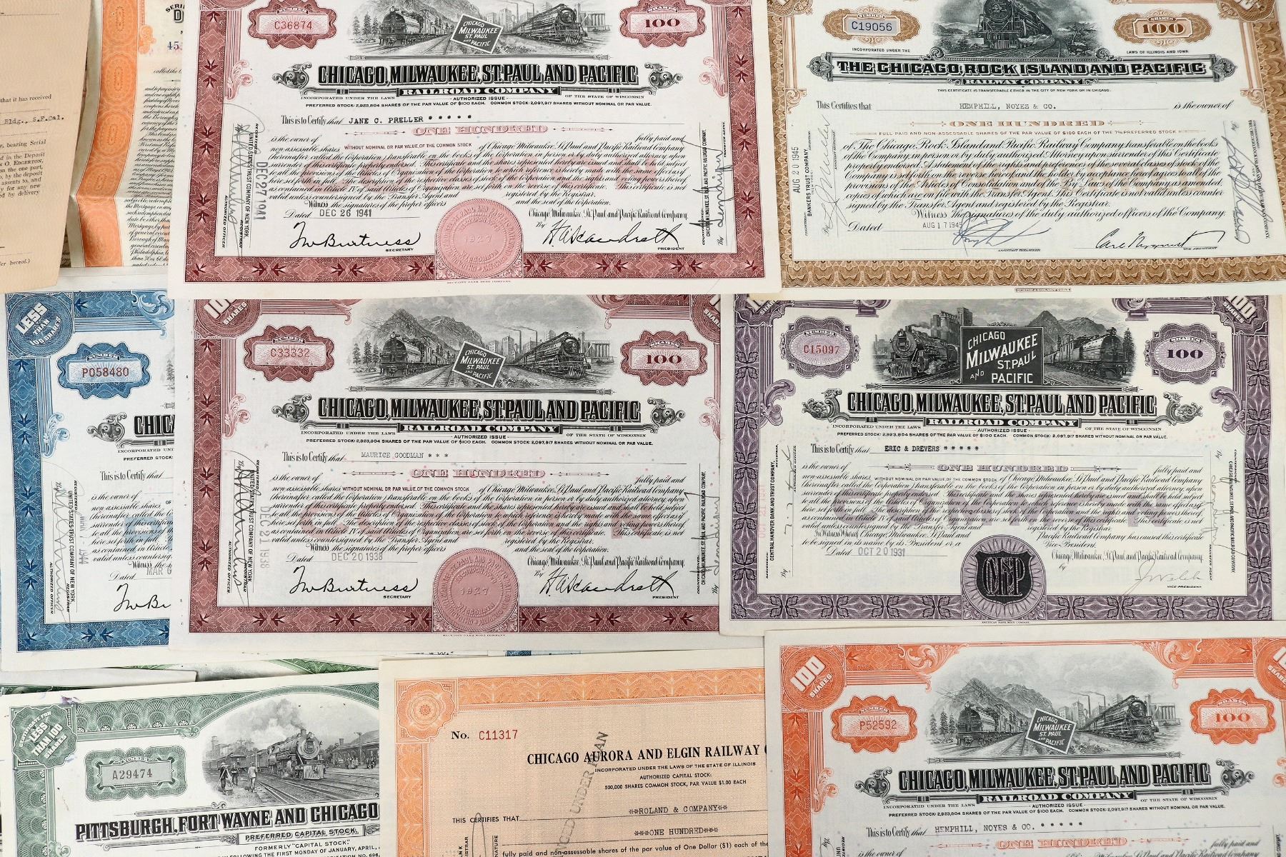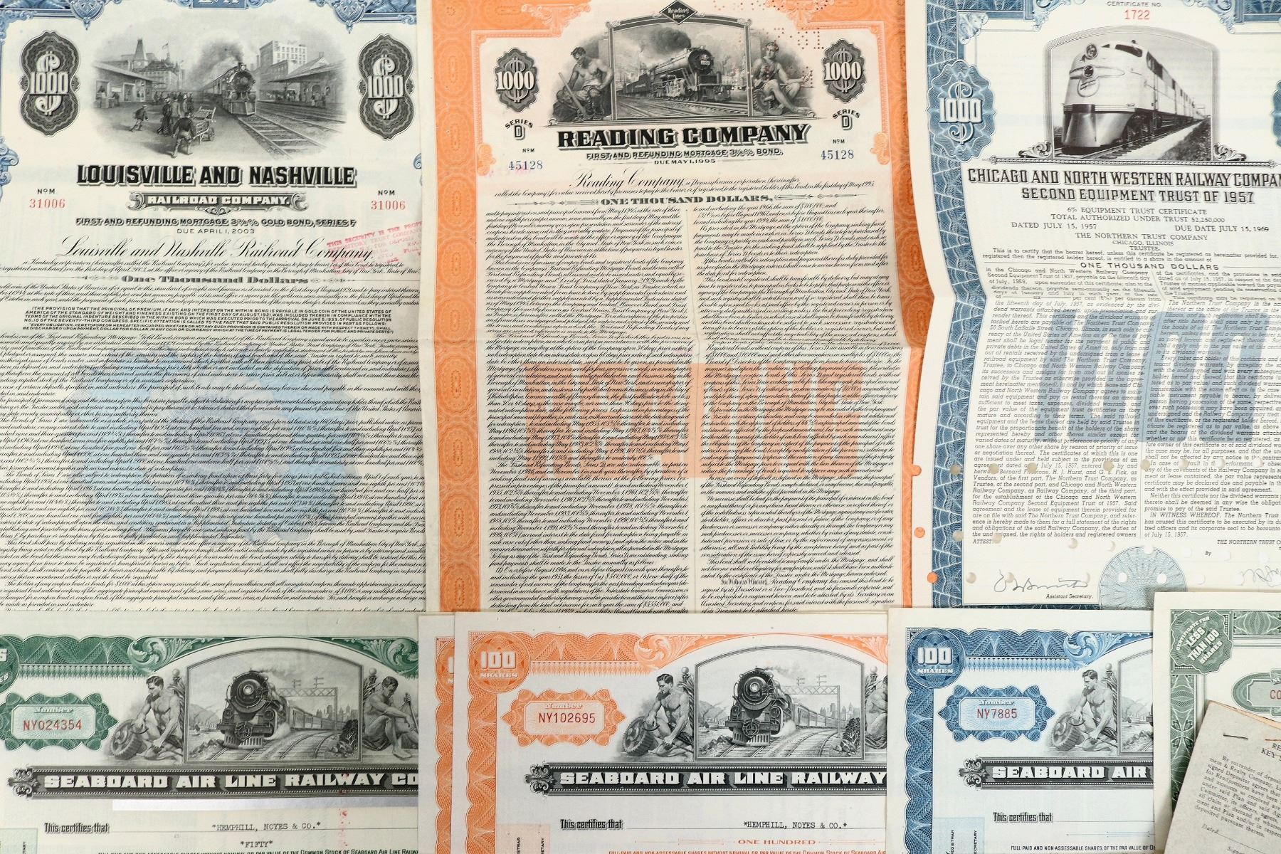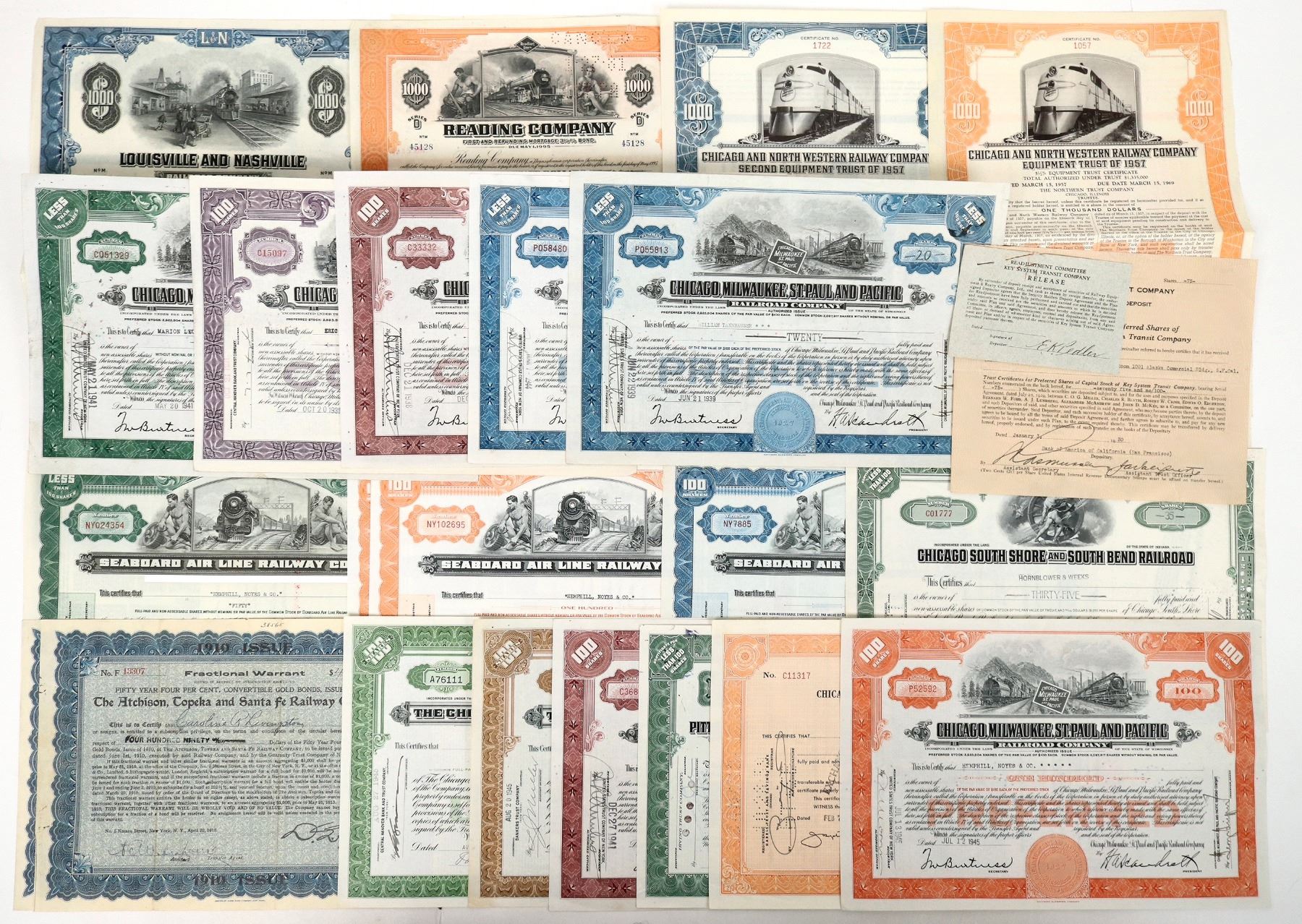1910-70 with dupes. Chicago, Rock Island and Pacific, Atchison, Topeka and Santa Fe, Seaboard Airline RW, Reading, Louisville and Nashville, Chicago, Milwaukee, St. Paul and Pacific etc. See photo.