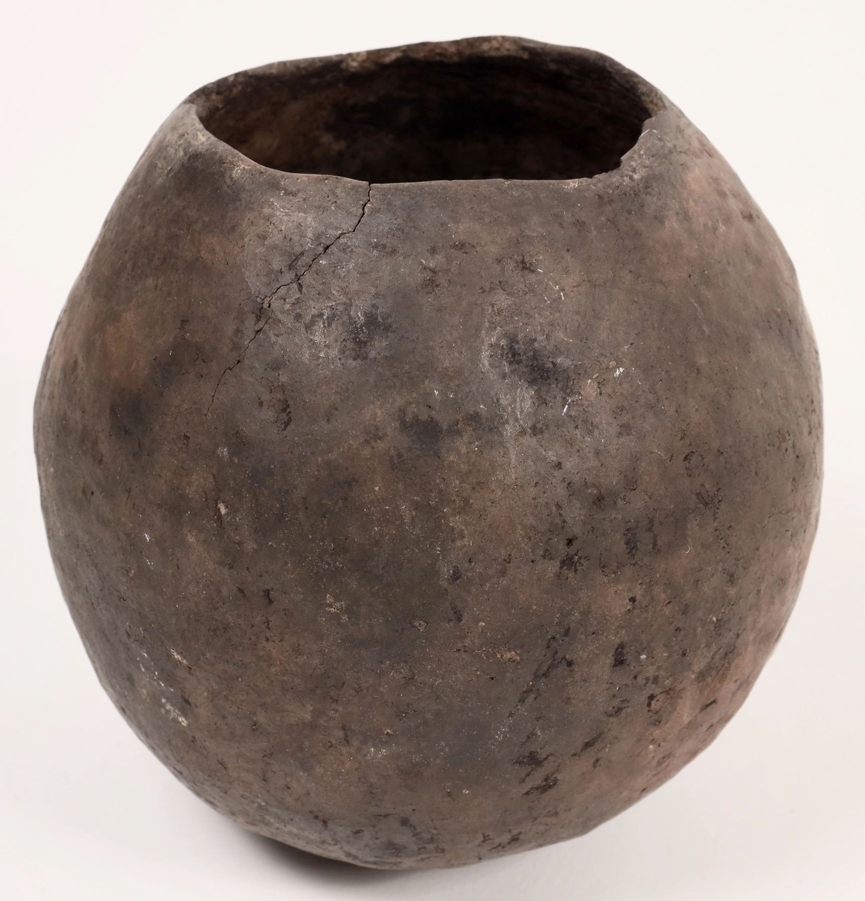 Mogollon brown seed jar, c. 500 AD from W. Central New Mexico. Good condition with some rim wear, one slight pressure crack, an excellent specimen for its age as per consigner museum note. 3" mouth, 6x6.25".